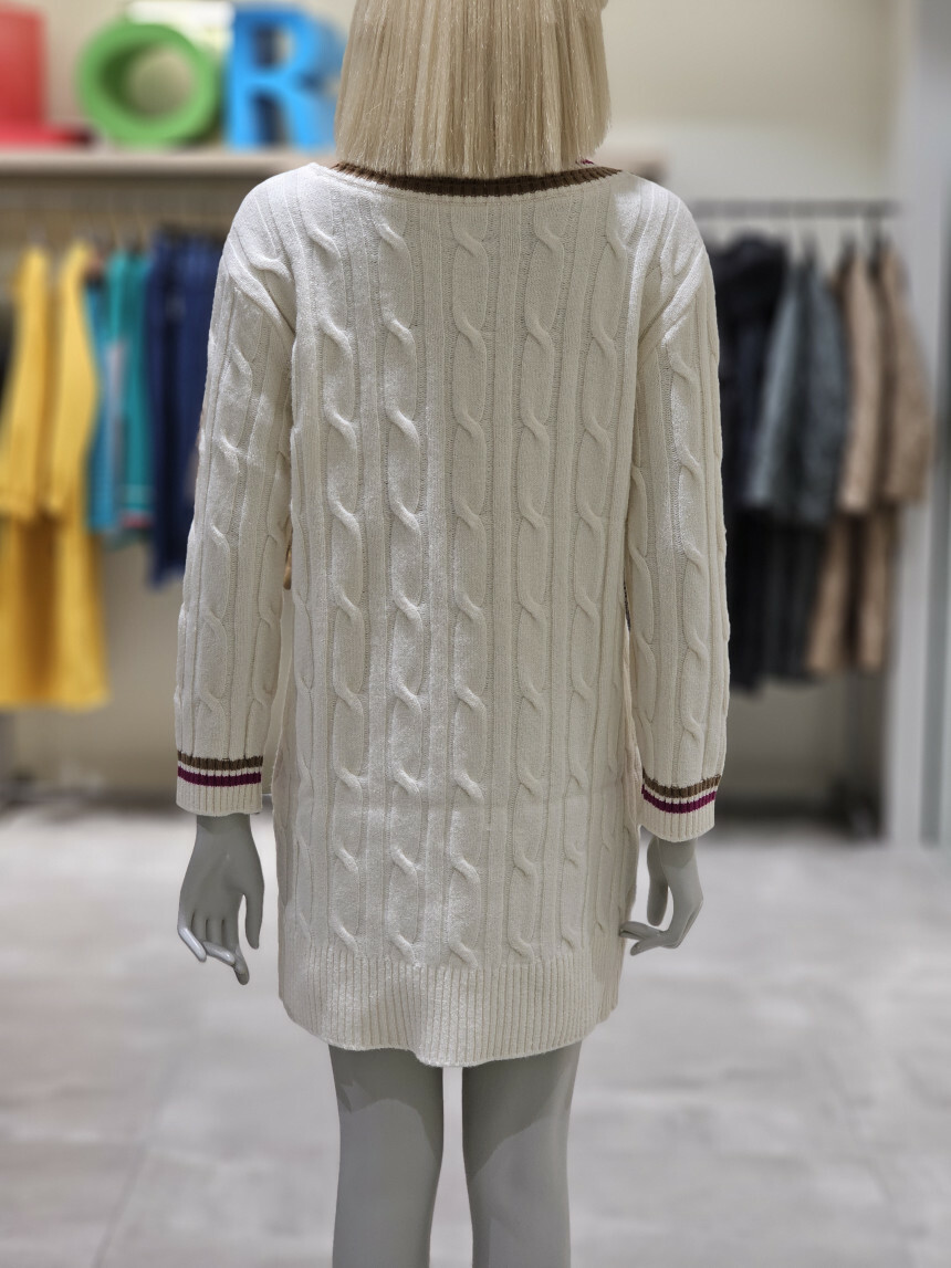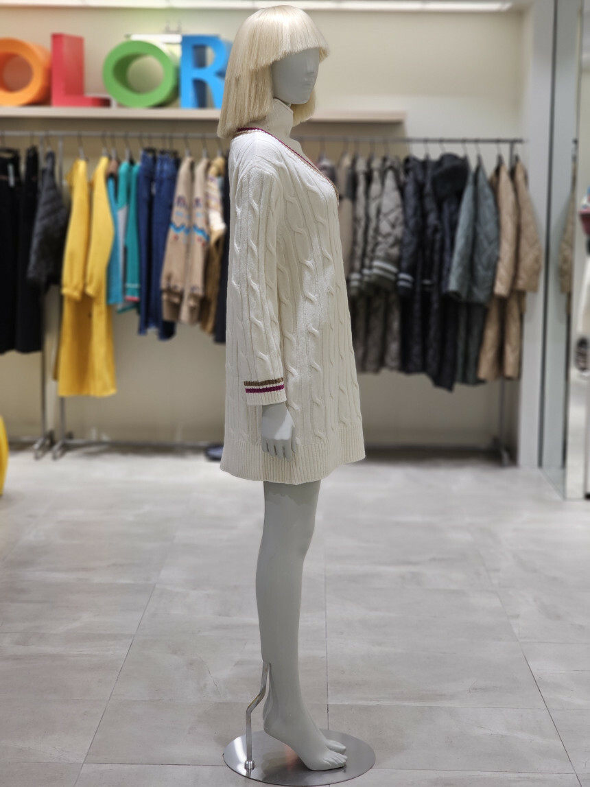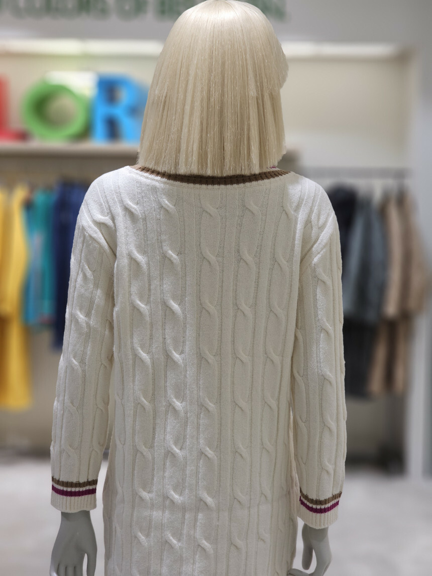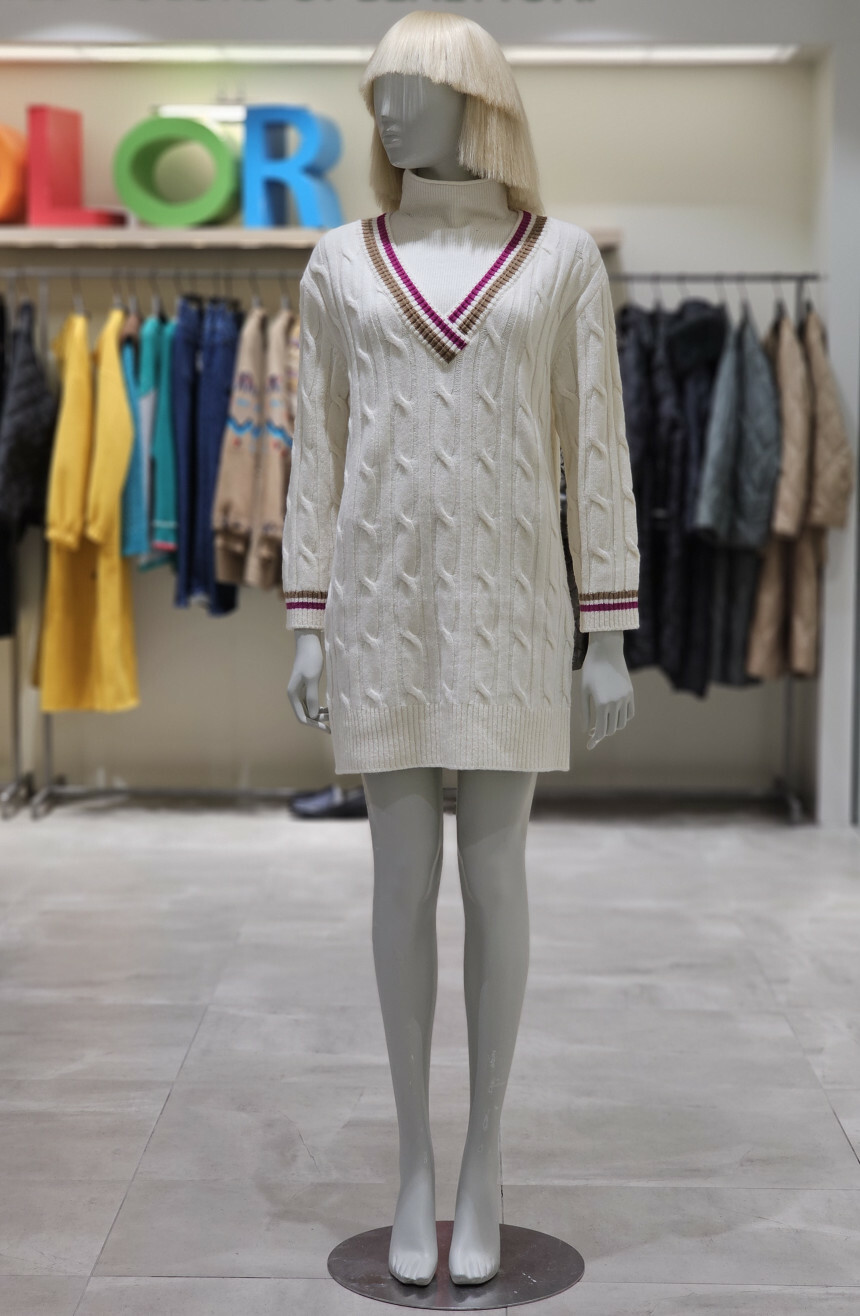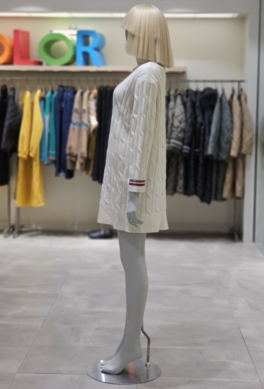 네크콜 레이어드한듯한 배색 케이블 니트 원피스.