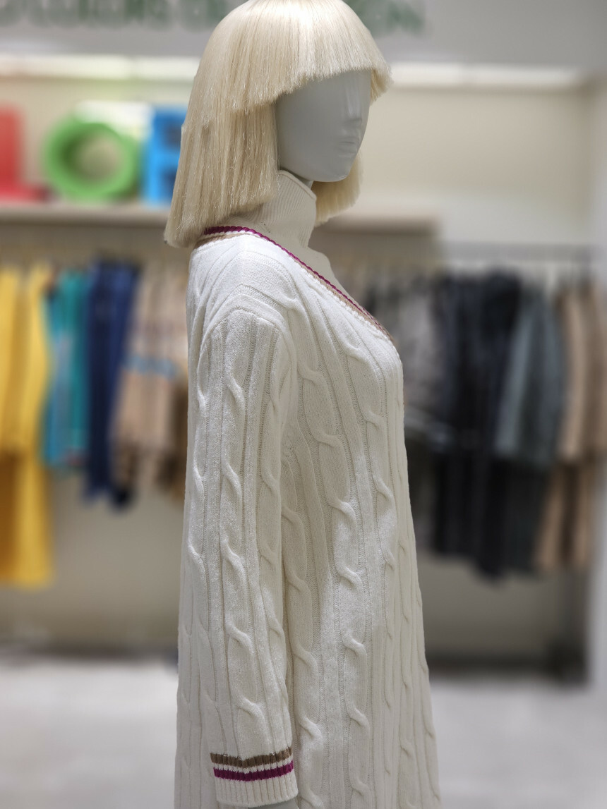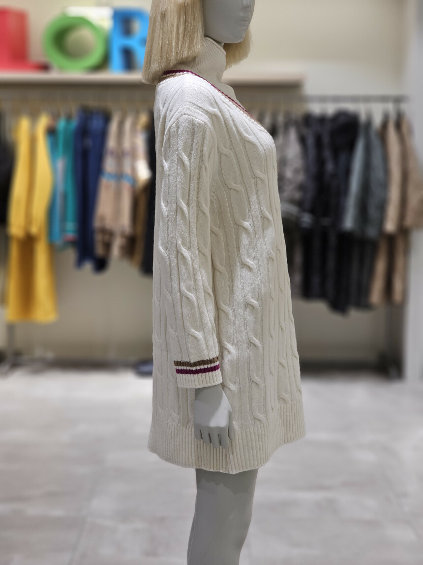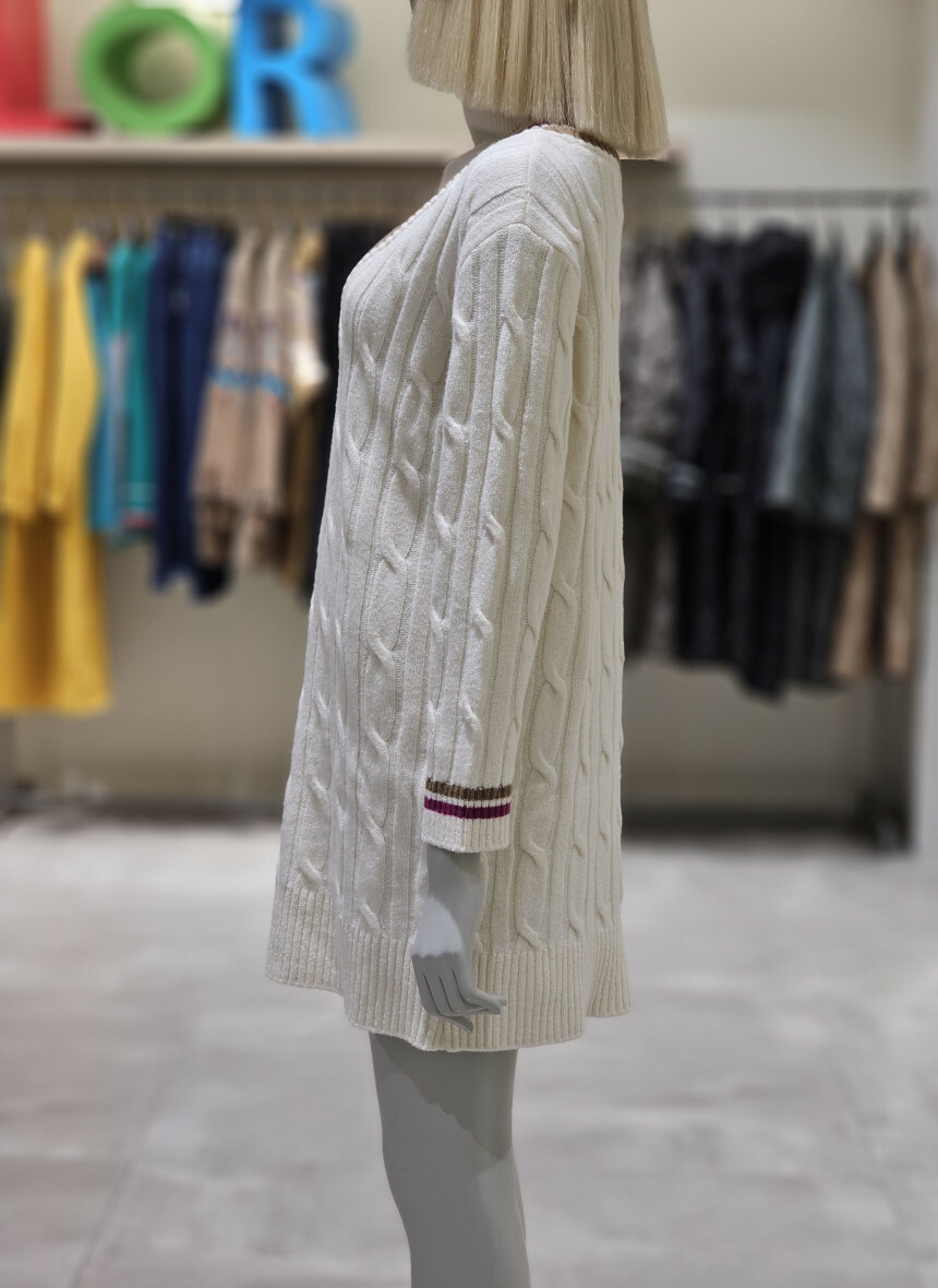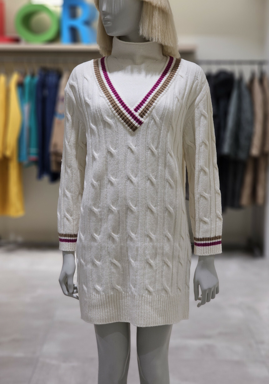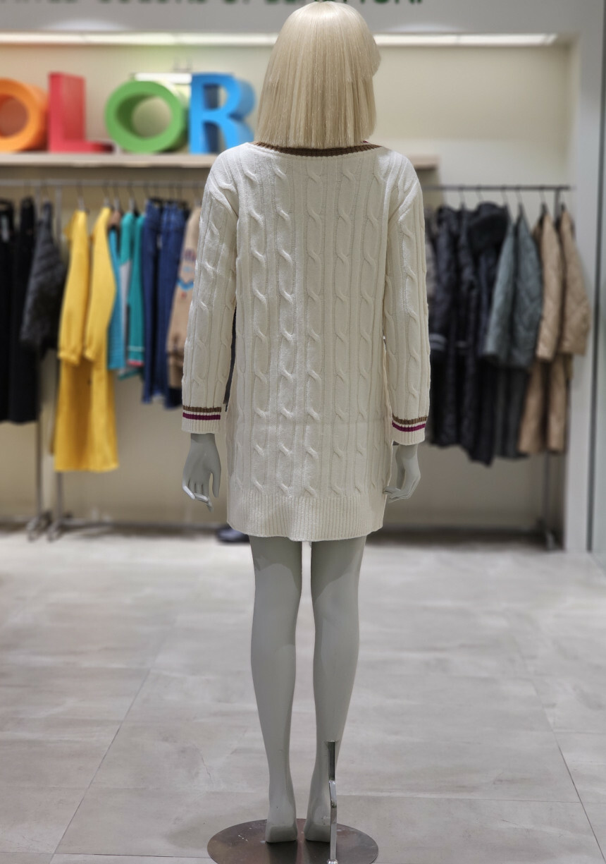 네크콜 레이어드한듯한 배색 케이블 니트 원피스.