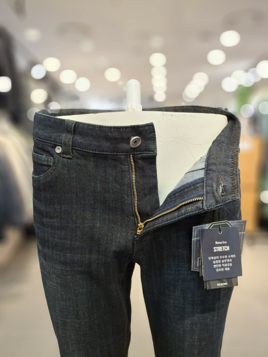 생지느낌의 세련된 다크한 인디고컬러의 신축성 좋은 기모 겨울청바지