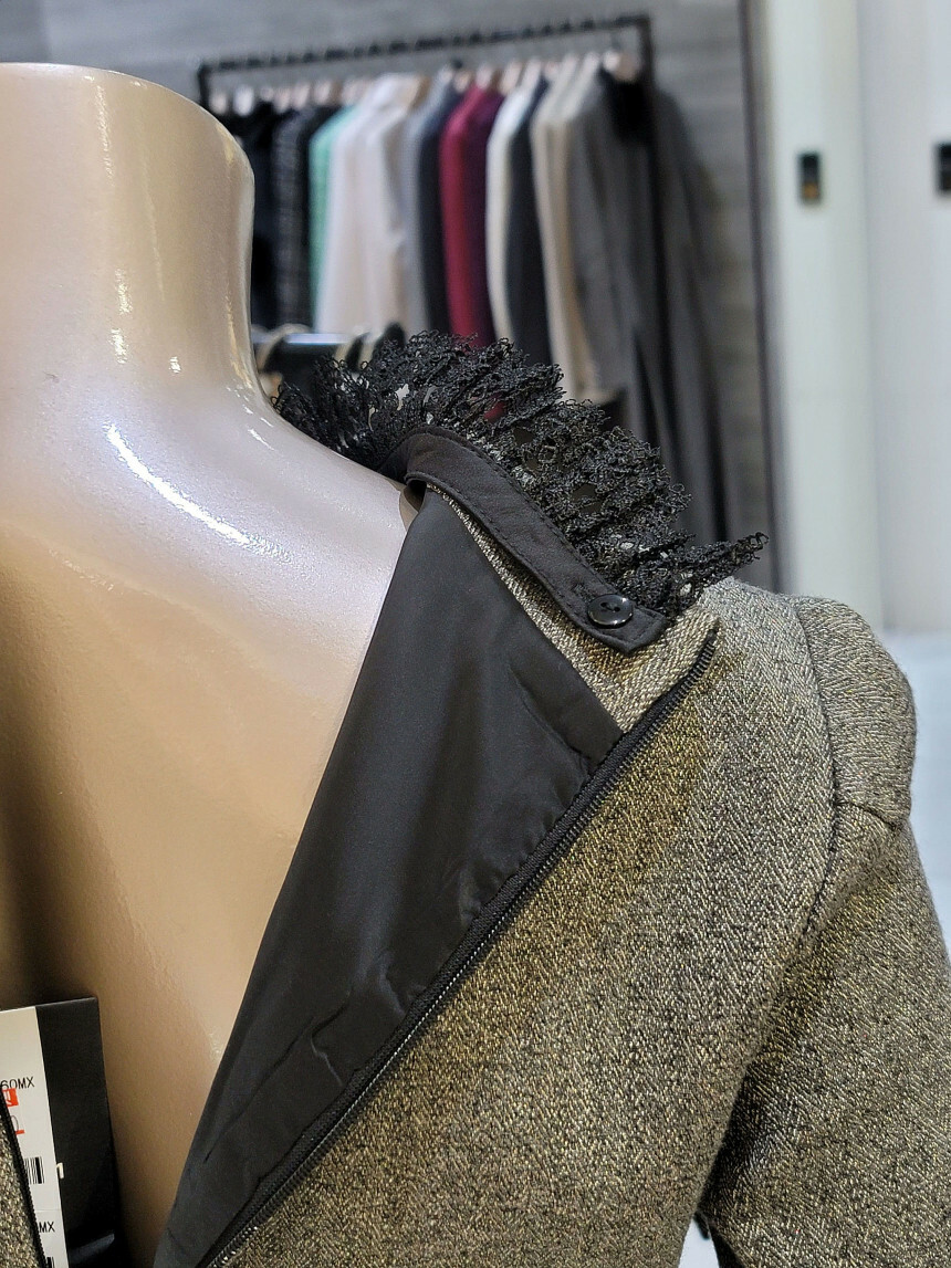 네크라인 탈부착 가능한 레이스와 버튼 포켓으로