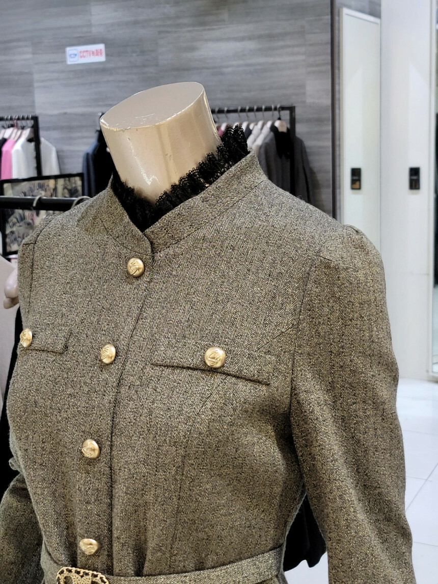 (55) 가슴너비 47.5 어깨너비 35 허리 너비 36.5 소매 60 총장 109CM