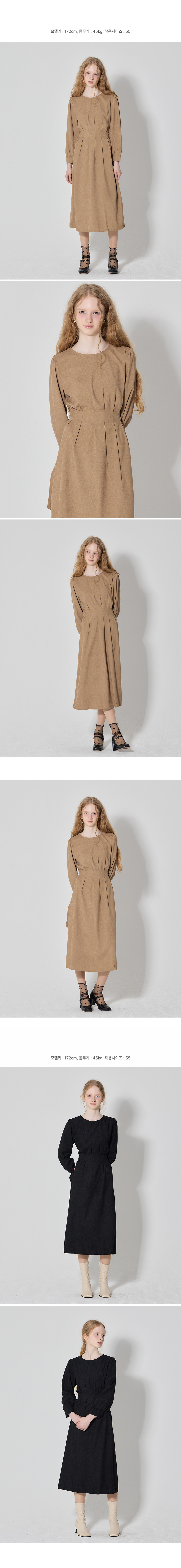 허릿단에 핀턱 디테일이 더해져 라인을 단정하게 잡아주는 원피스입니다. 브랜드만의 고급 소재를 활용하여 우수한 착용감을 선사합니다. 고급스러운 무드로 FW시즌에 활용하기 좋은 아이템입니다.