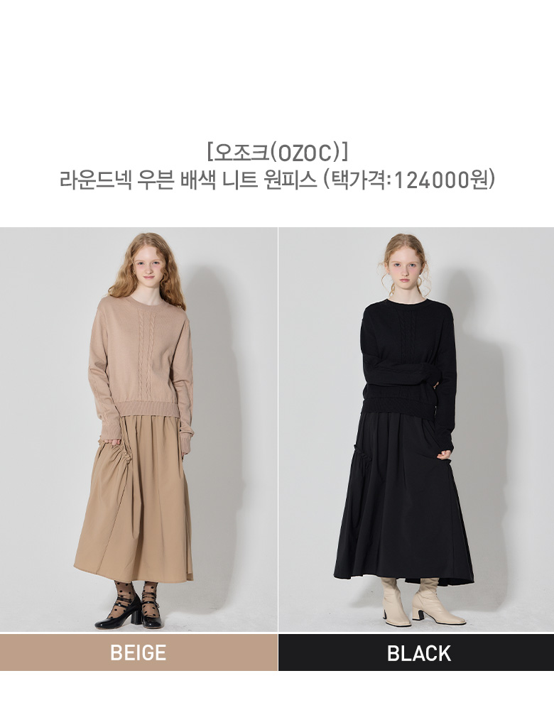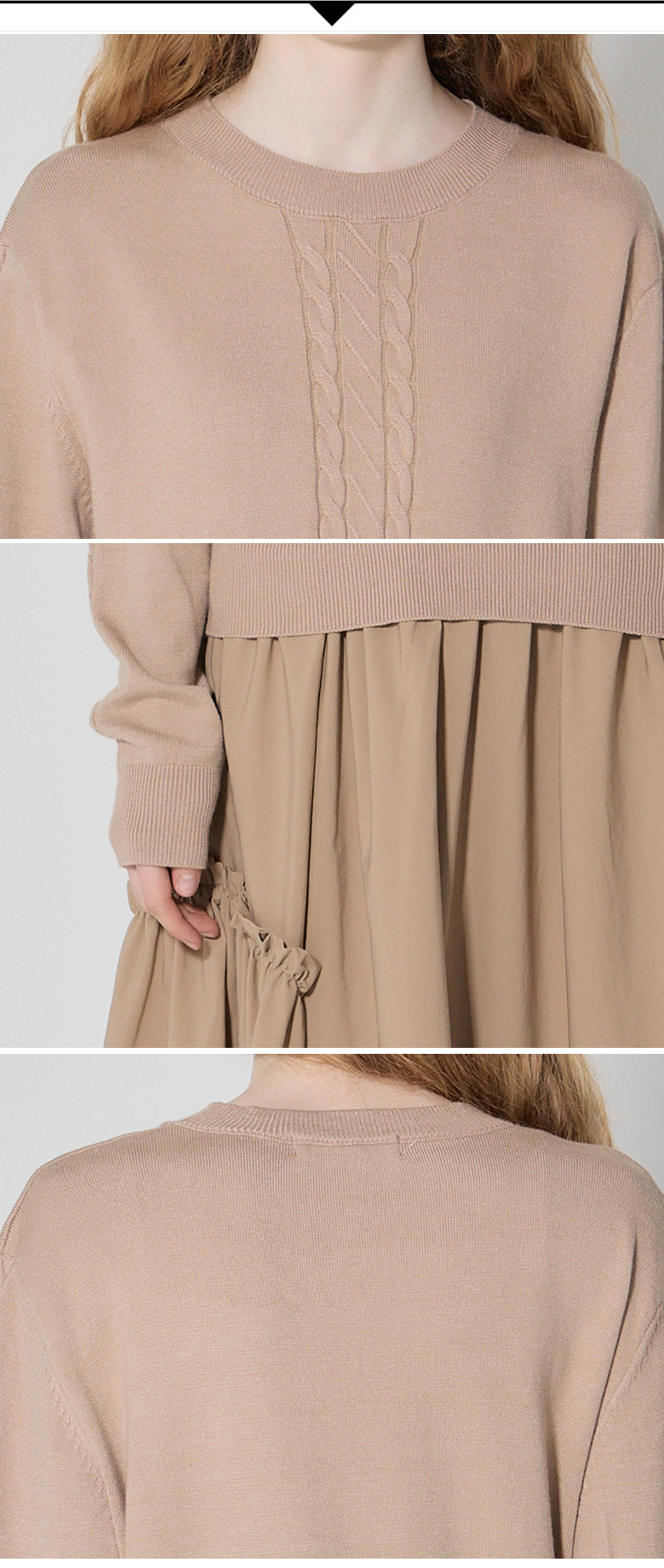 ITEM : 라운드넥 우븐 배색 니트 원피스