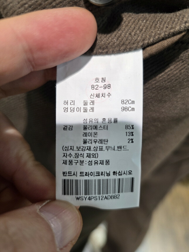 겉감 : 폴리에스터 85% , 레이온 13% , 폴리우레탄 2%