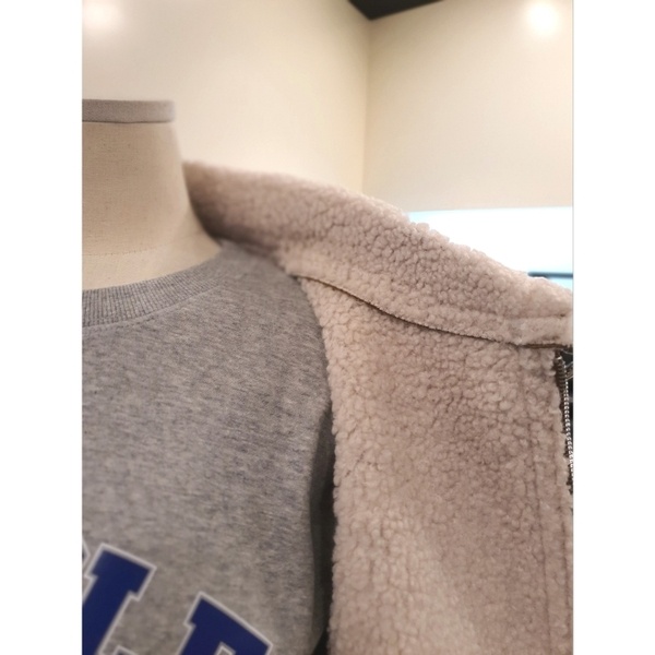 카라부분 뽀글소재로 더욱 따스해보이고 귀여운 매력이 있는 상품입니다.
