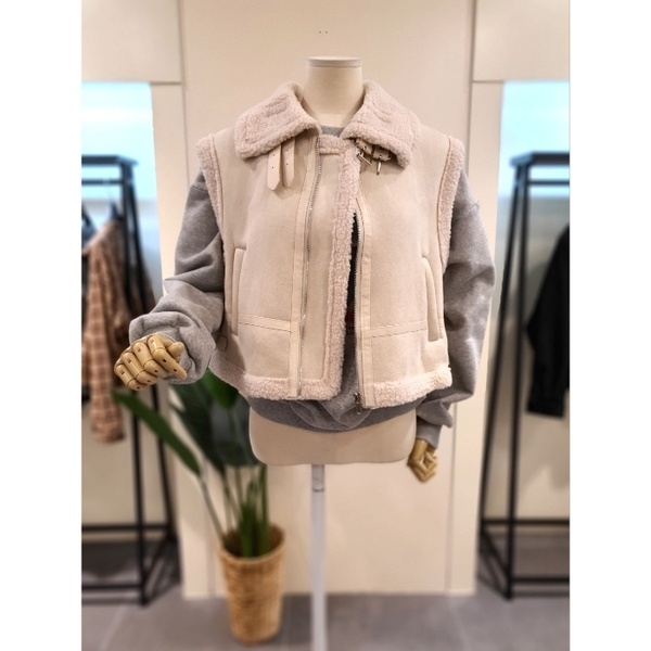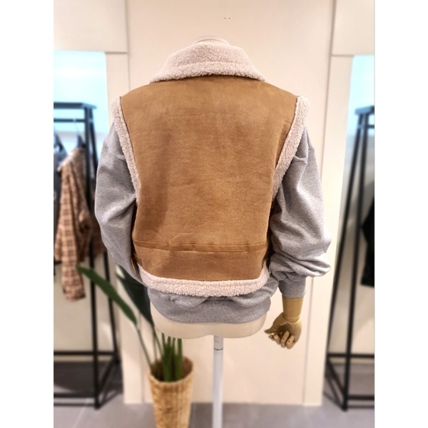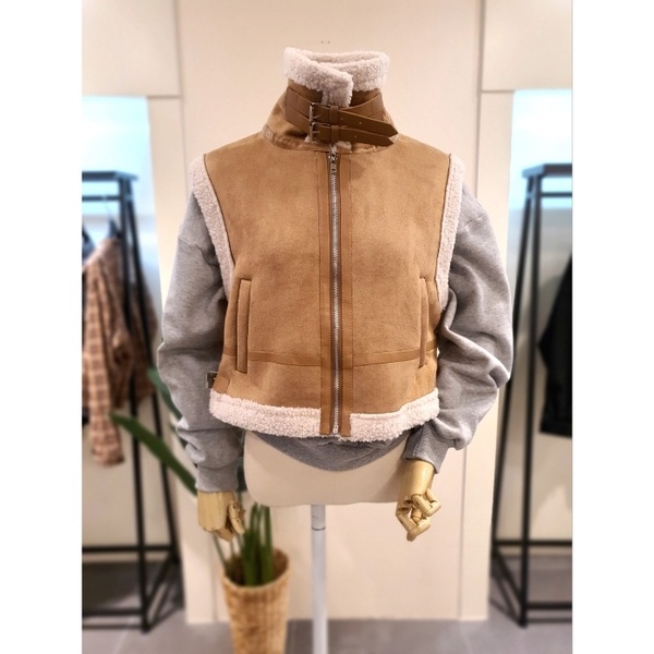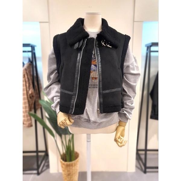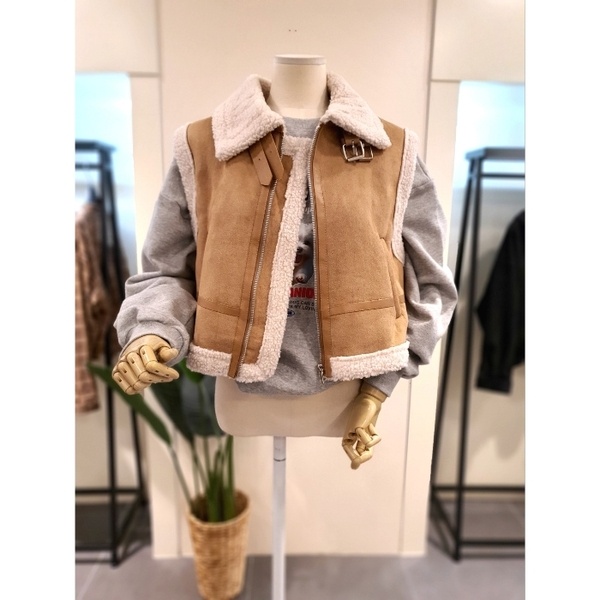 부드러운 스웨이드 원단의 무스탕 집업 베스트입니다.