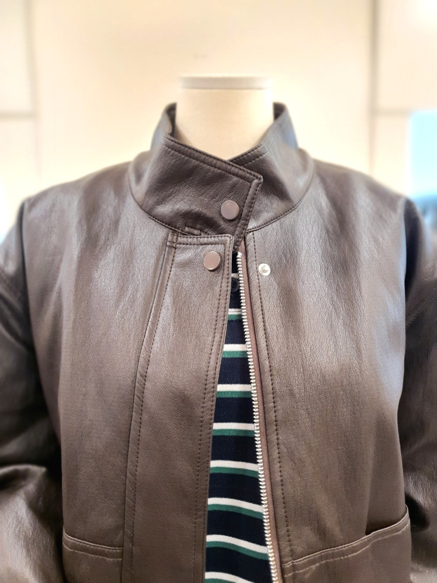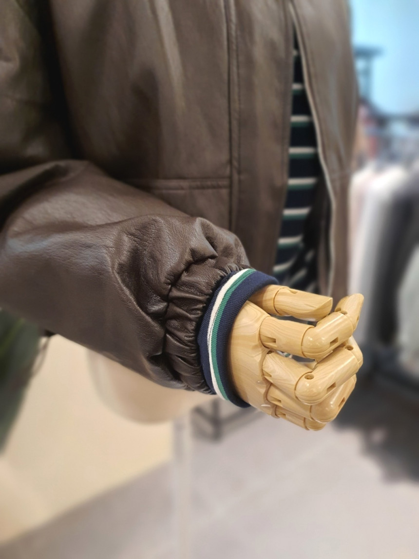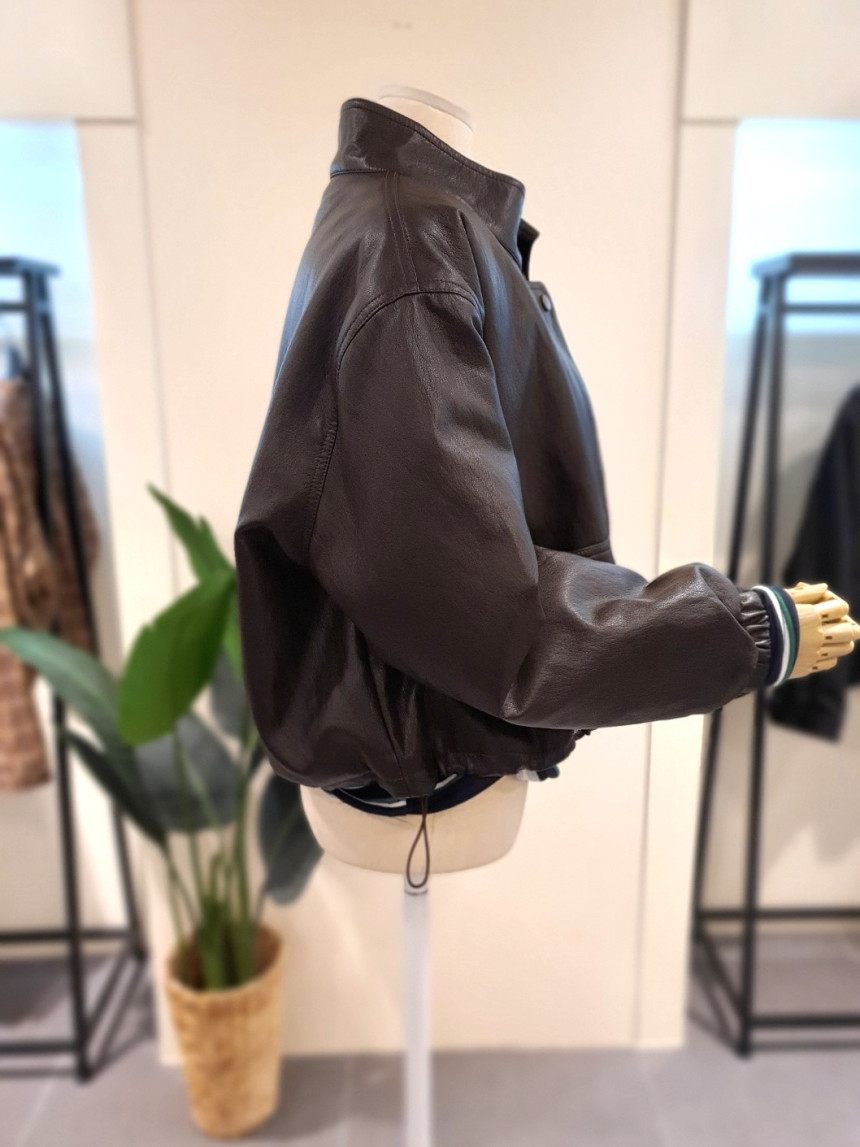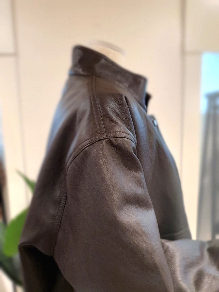 안감 에코퍼 레더점퍼입니다. 차이나 반목 넥라인으로 따뜻하고 멋스러운 디자인입니다.