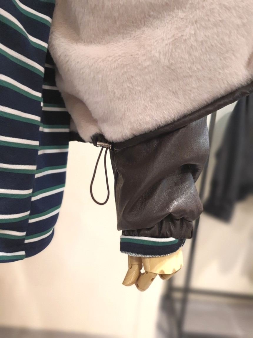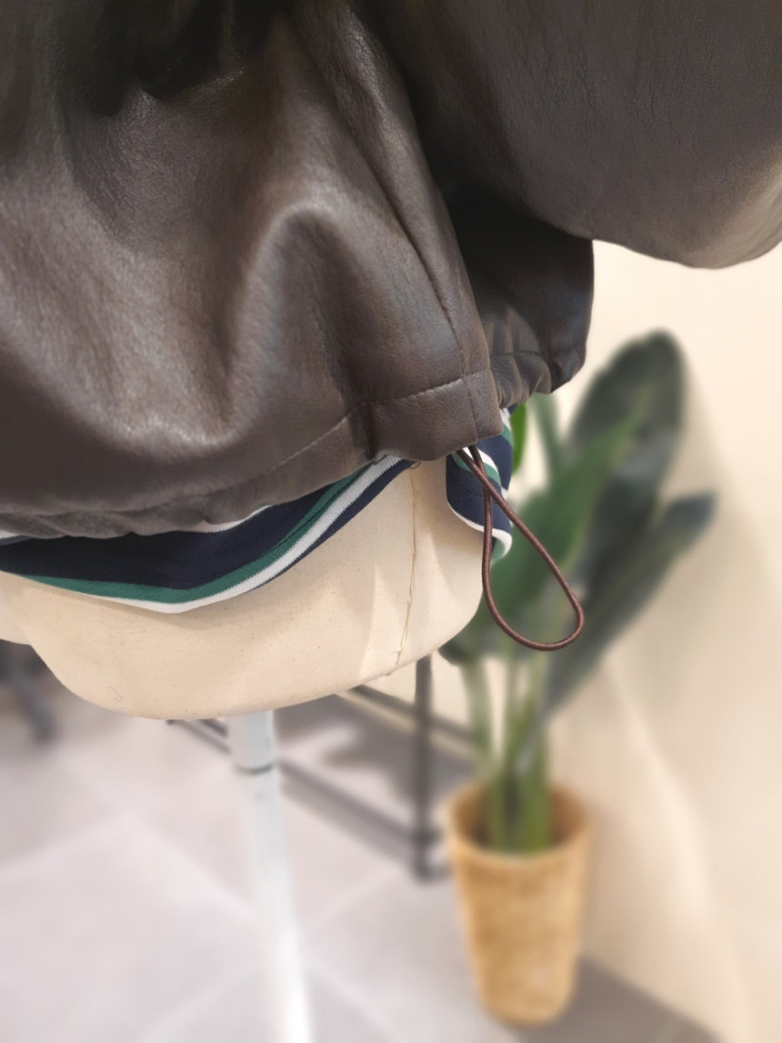 팔부분은 일반 안감으로 부해보이지 않습니다 .밑단 양쪽 스트링으로 모양을 잡아 착용 가능합니다.