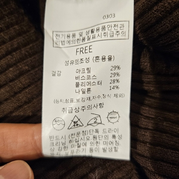 제품소재 : 겉감-아크릴29%, 비스코스29%, 폴리에스터28%, 나일론14%