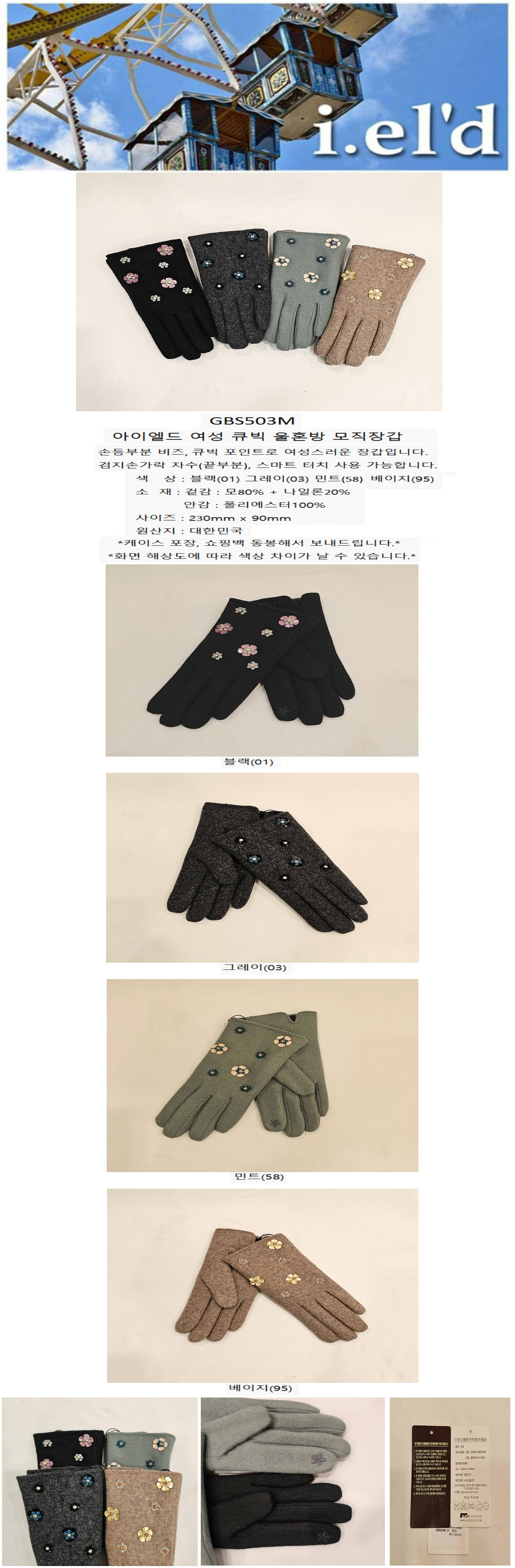 GBS503M_여성 큐빅 울혼방 모직장갑
