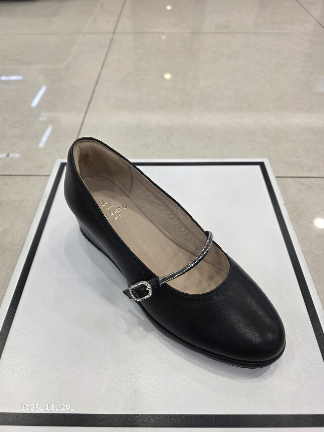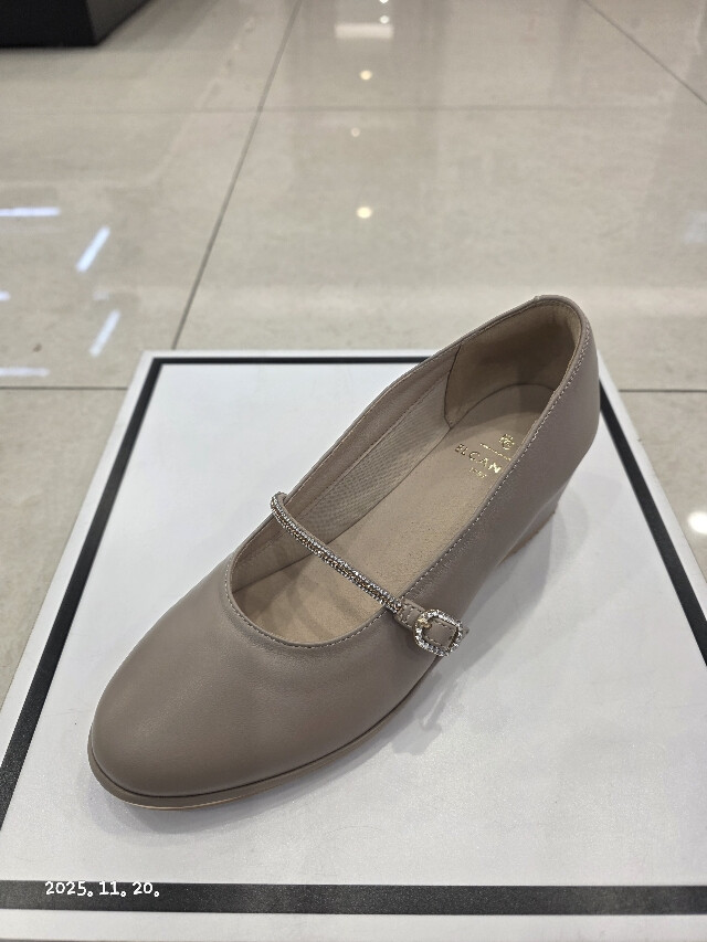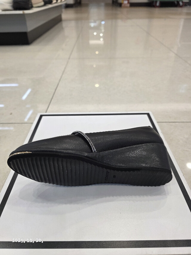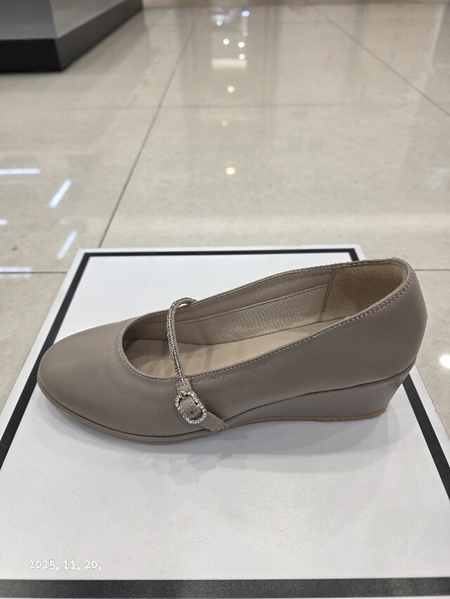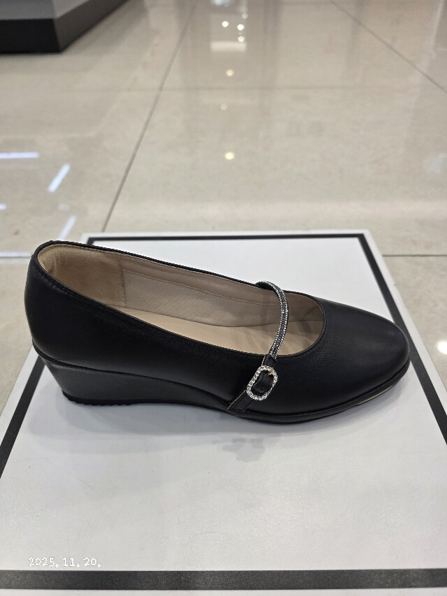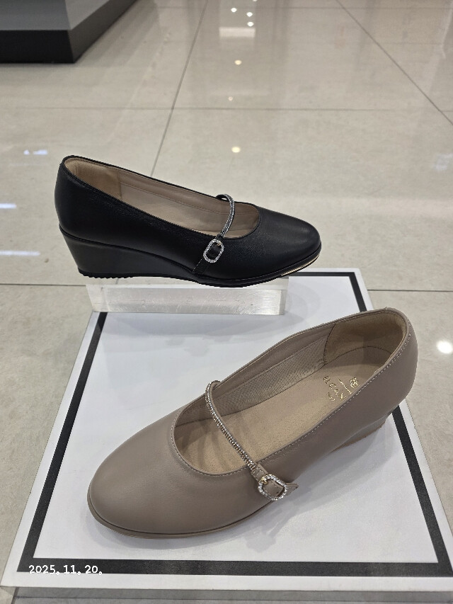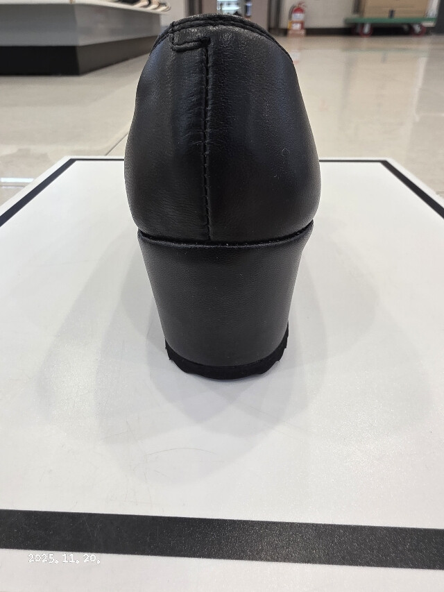 굽높이 약5cm의 높이에 천연 양가죽소재를 사용하여 제작된 여성 초경량 웻지펌프스입니다