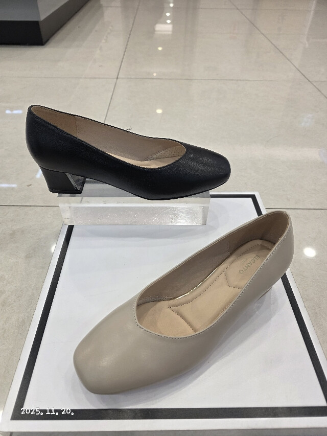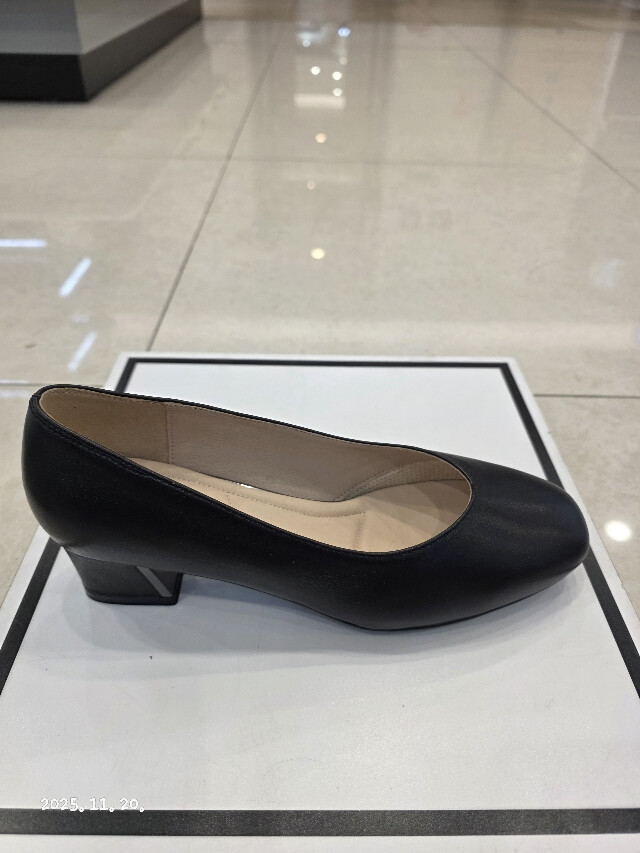 굽높이 약4.5cm의 높이에 천연 양가죽 소재를 사용하여 제작된 여성 기본펌프스입니다