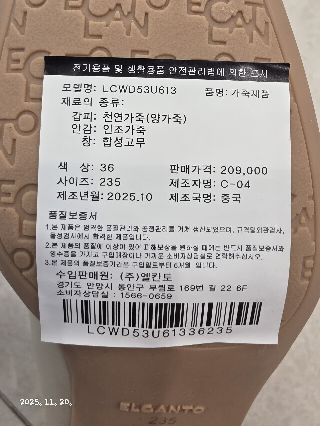 발바닥부분에는 이탈리아 주머니공법으로 제작돠 말랑말랑한 쿠셔닝 깔창을 사용하여 착화시 발바닥쪽이 편안하게 신으실수있도록 제작된 제품입니다