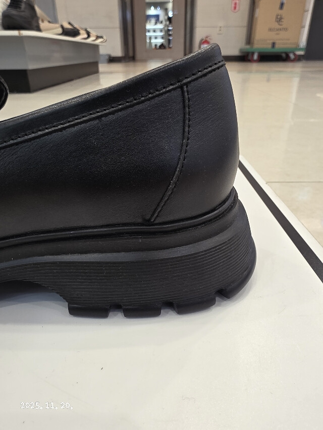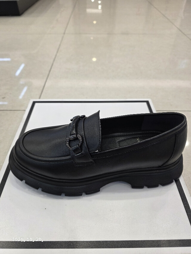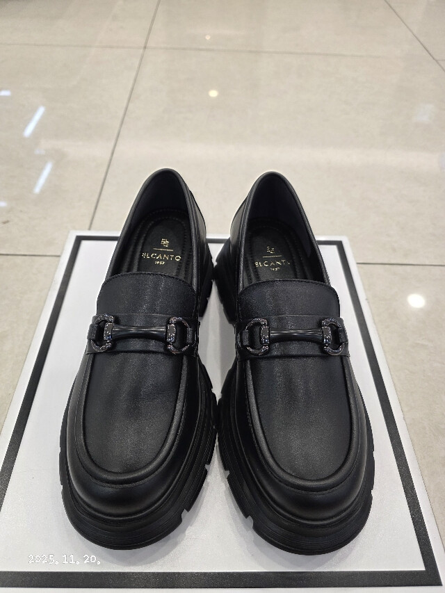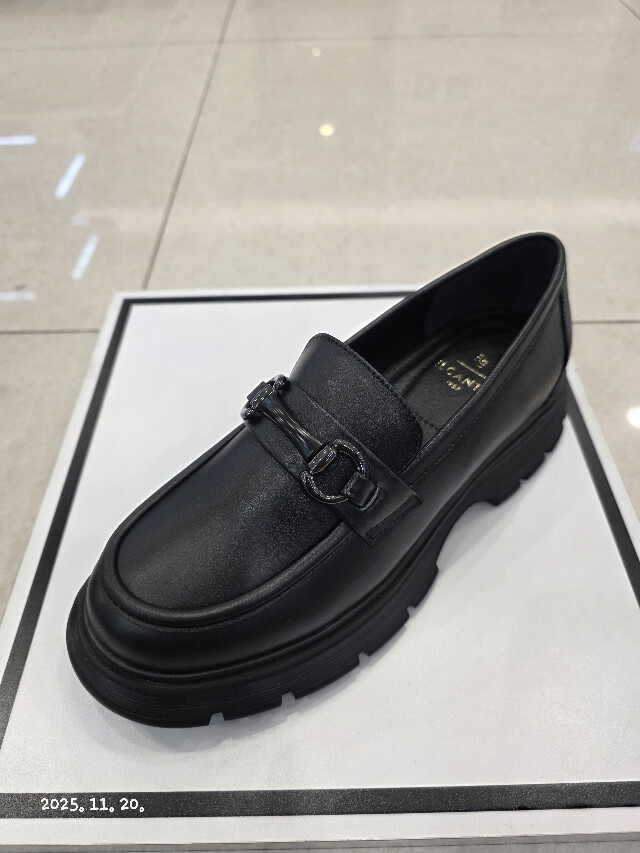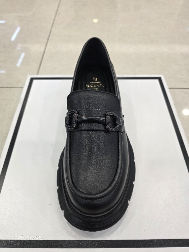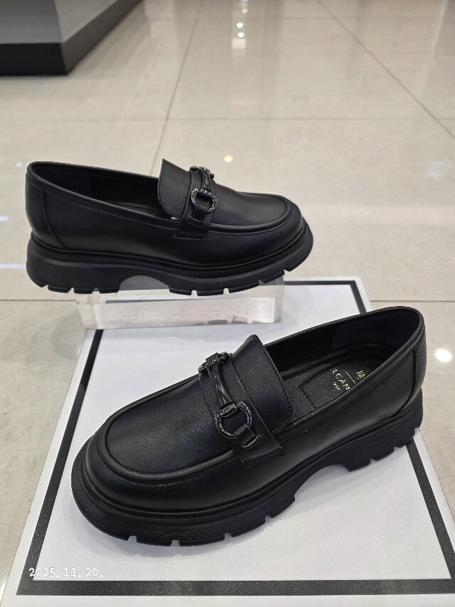 굽높이 약4|*|5cm의 높이에 천연 소가죽소재를 사용하여 제작된 여성 청키로퍼입니다