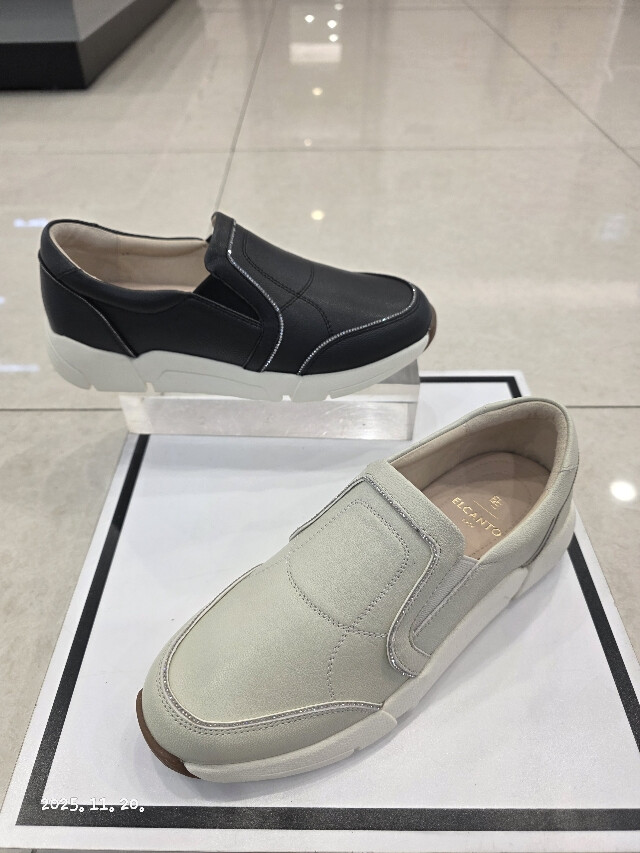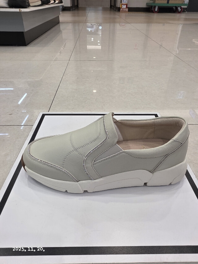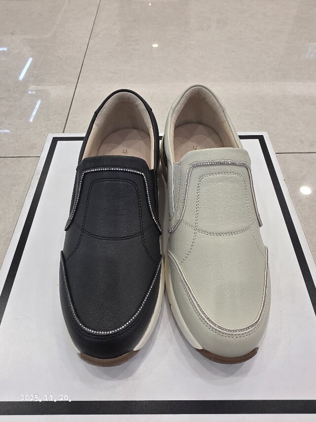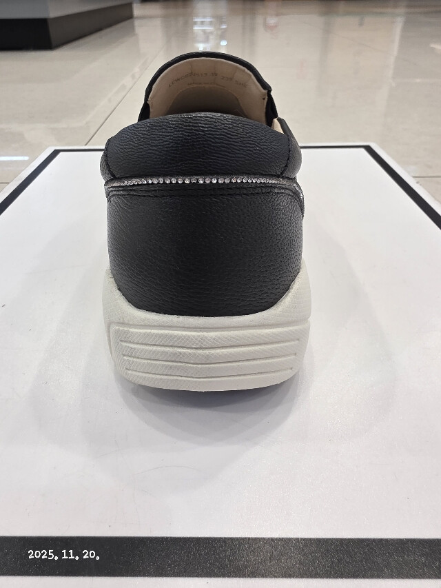 굽높이 약4cm의 높이에 천연 양가죽소재를 사용하여 제작된 여성 슬립온입니다