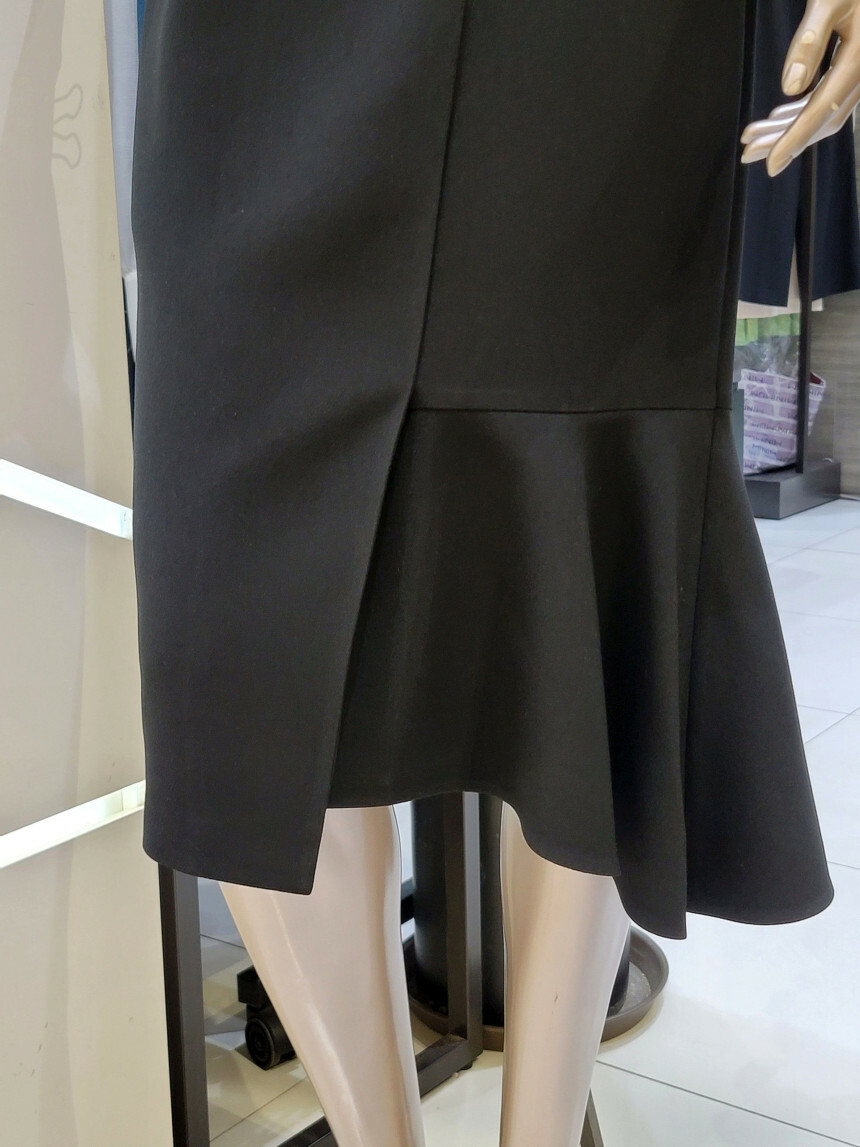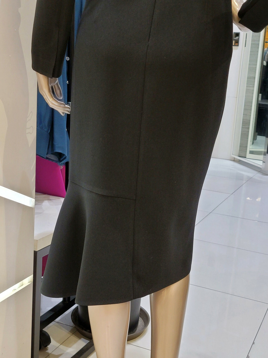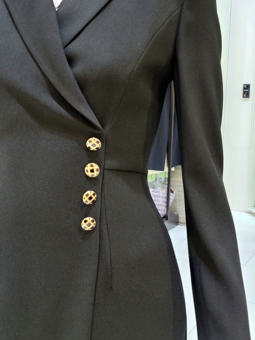 허리 라인 사이드 버튼 장식과 밑단 슬릿 디테일로