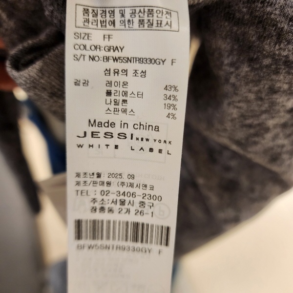 제품소재 : 레이온43%,폴리에스터43%,나일론19%,스판덱스4%