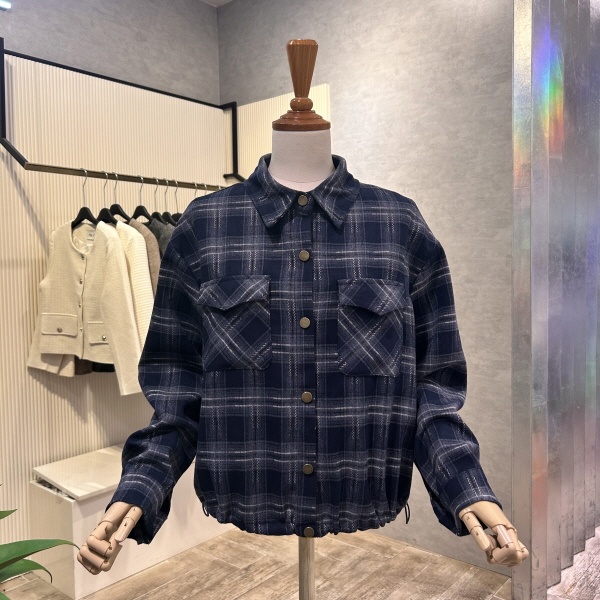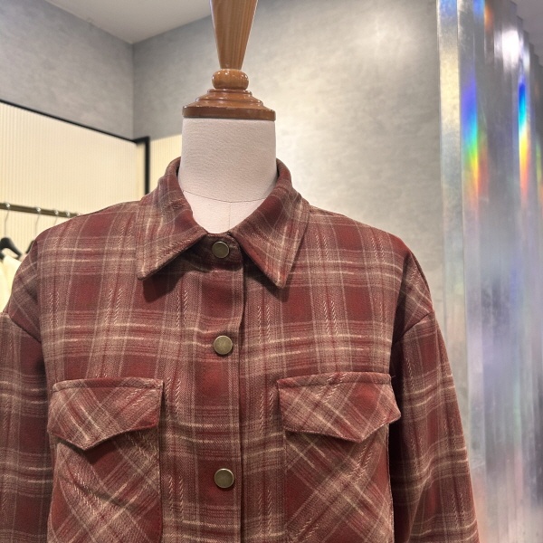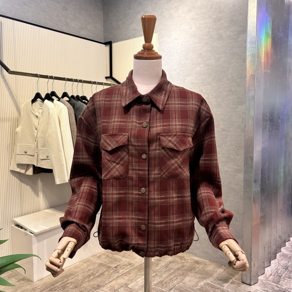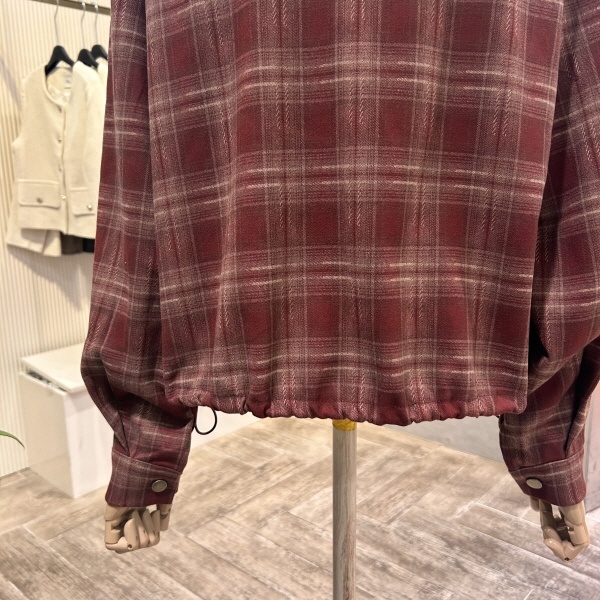 2025년 f/w?신상?체크 패턴 카라 스트링 셔츠 입니다.