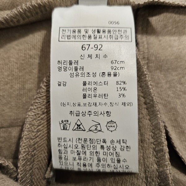 제품소재 : 겉감-폴리에스터82%, 레이온15%, 폴리우레탄3%