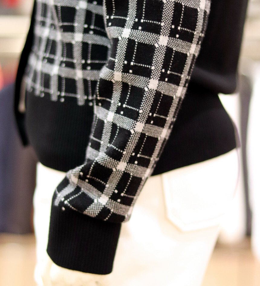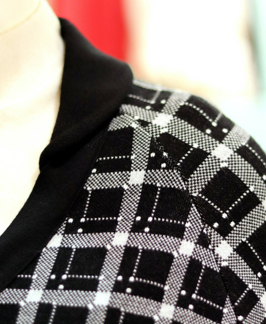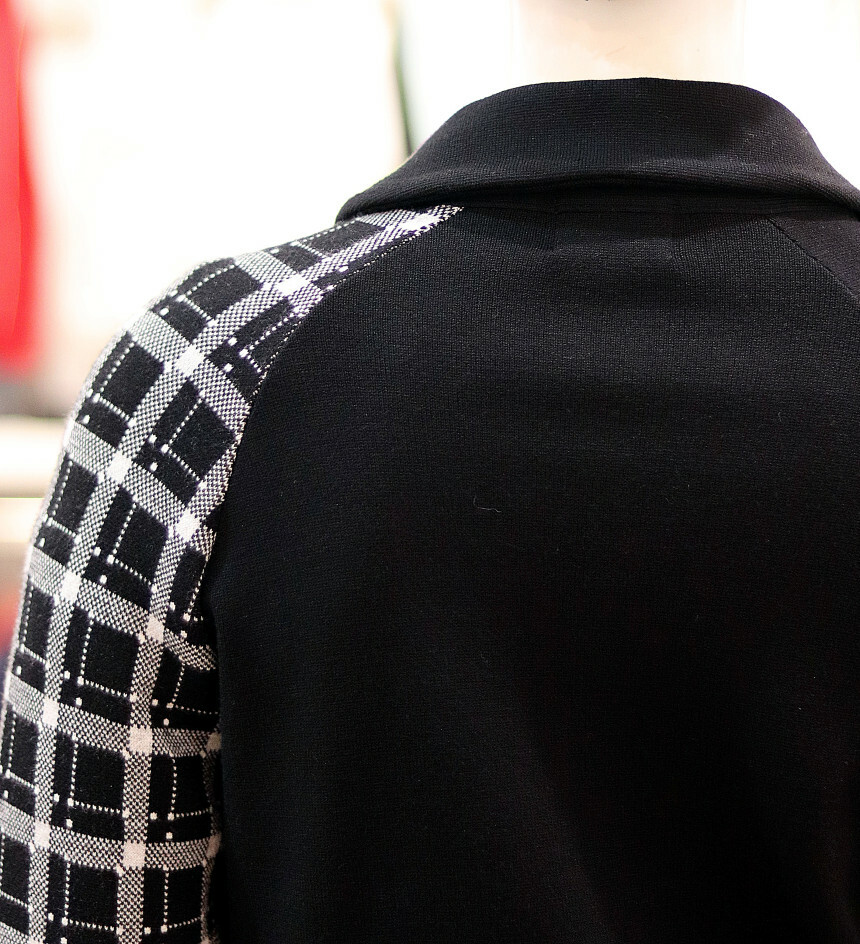 시즌 체크 패턴에 솔리드 배색을 믹스매치해