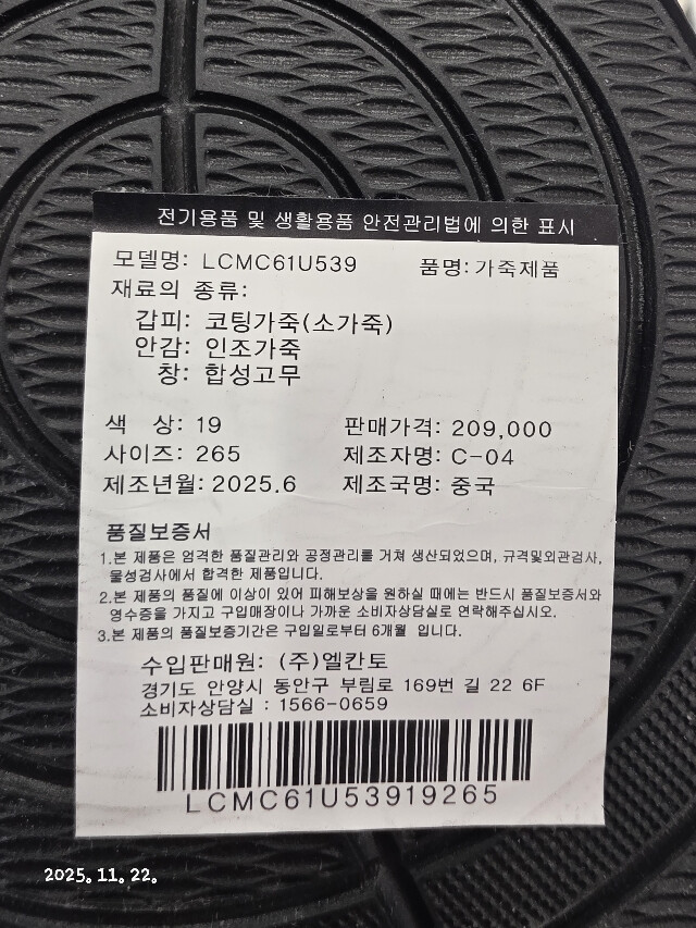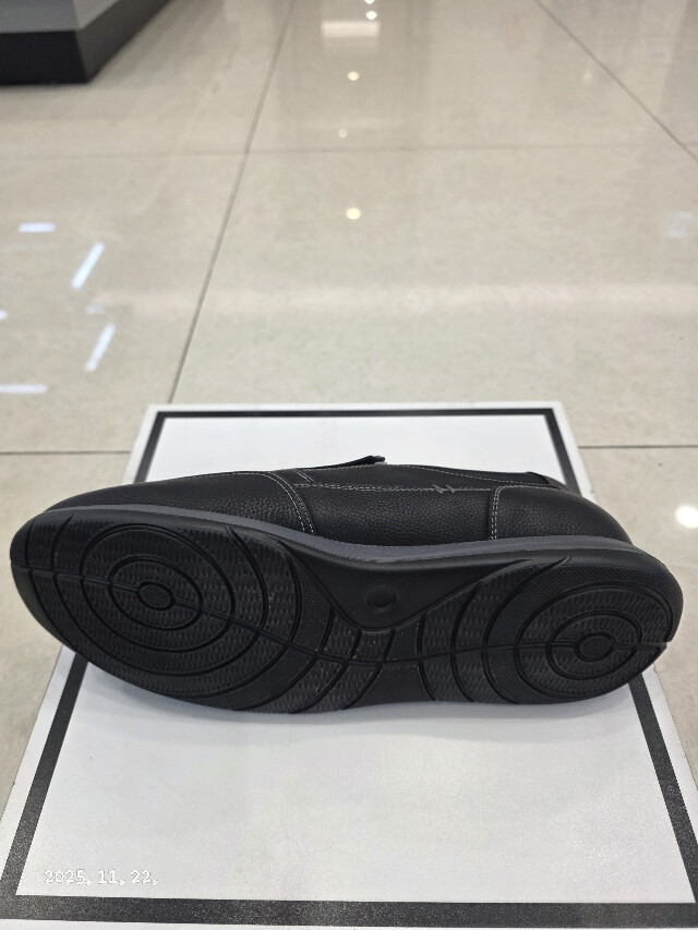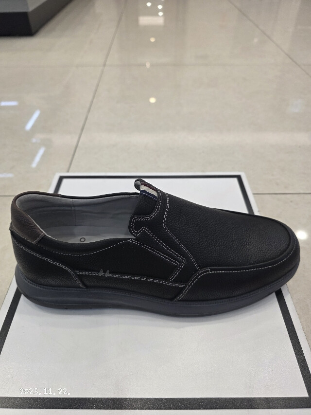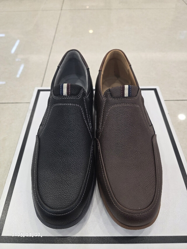 굽높이 약2.5cm의 높이에 천연소가죽소재를 특수공법으로 가공처리하여 제작된 남성 초경량 컴포트구두입니다