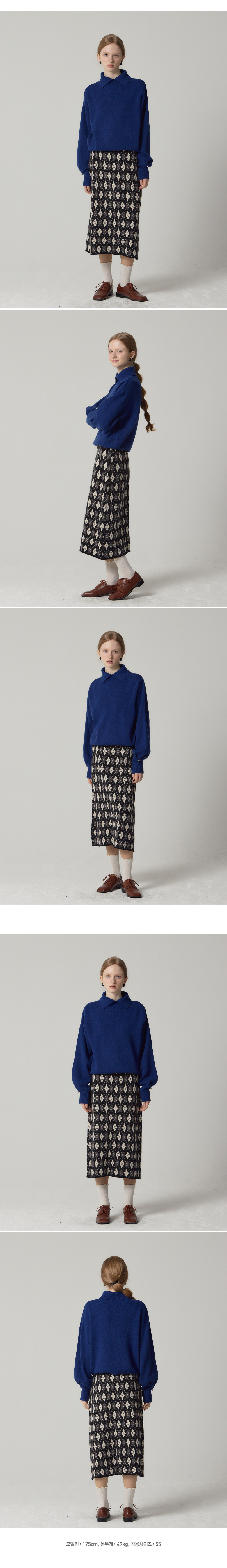 트임이 있어 카라 느낌을 주는 하프넥과 우아한 소매라인이 포인트인 니트입니다.
