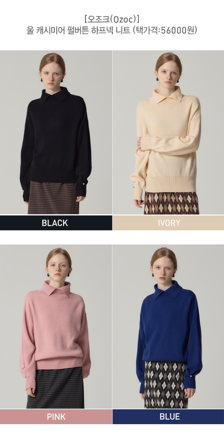ITEM : 울 캐시미어 펄버튼 하프넥 니트