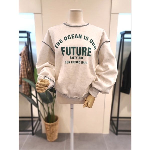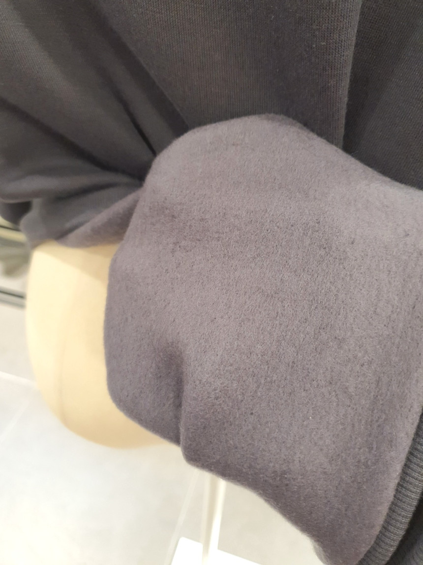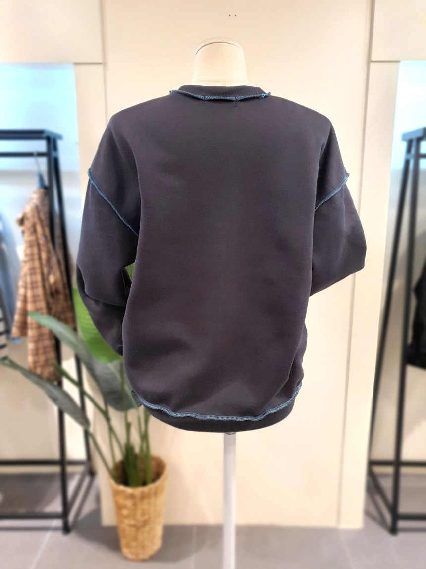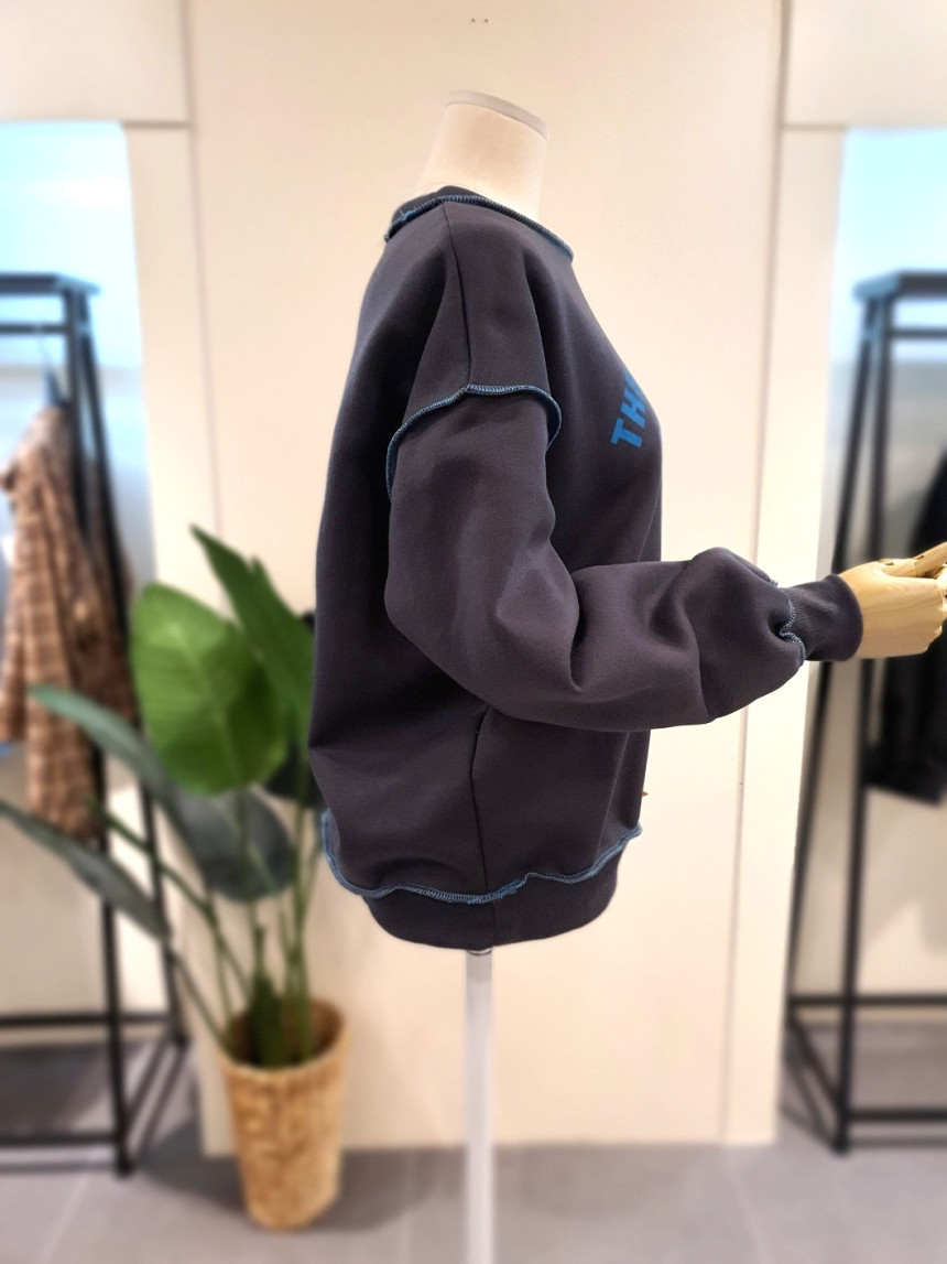 안감기모 맨투맨입니다.넥 밑단 소매 배색 스티치로 포인트를 주었습니다.