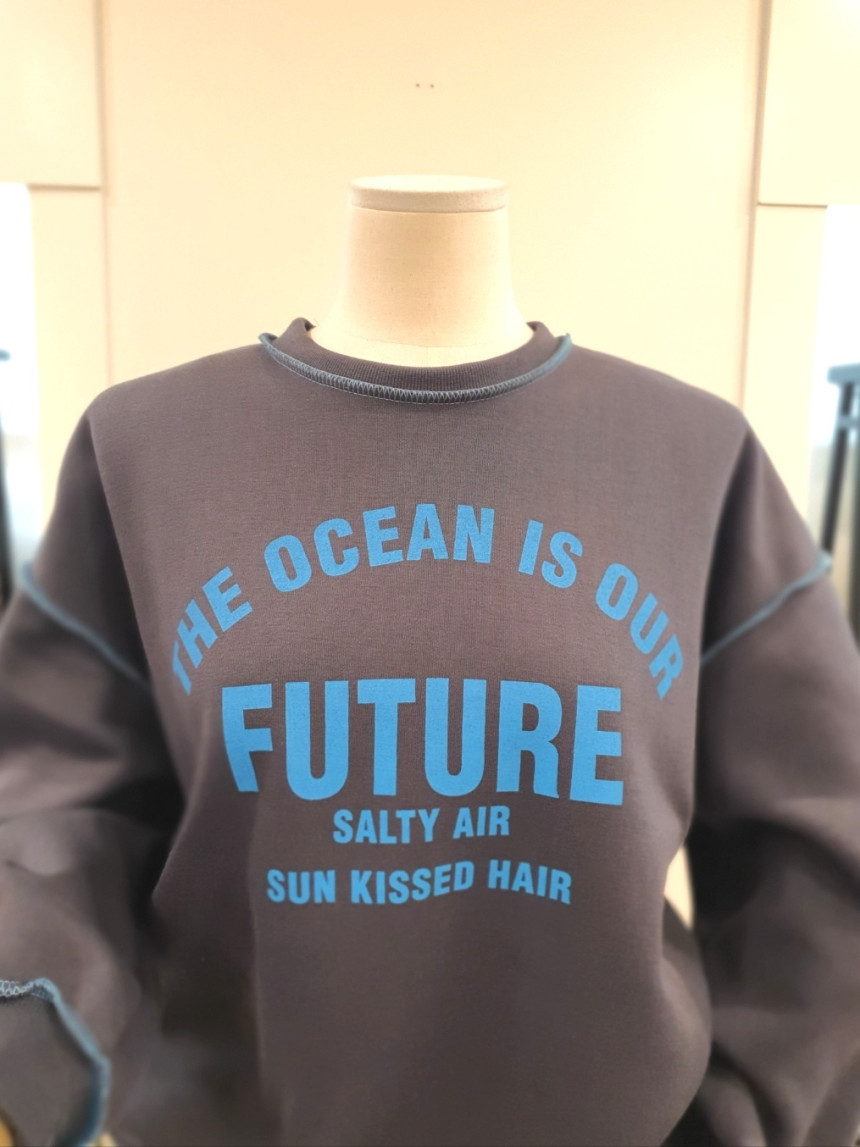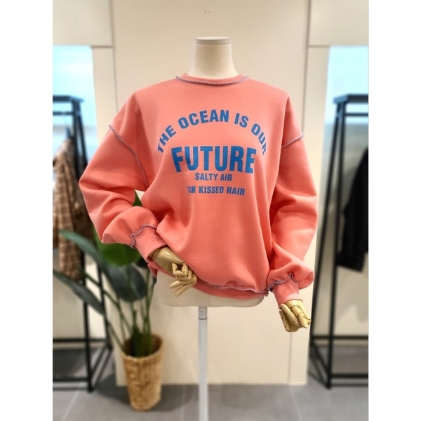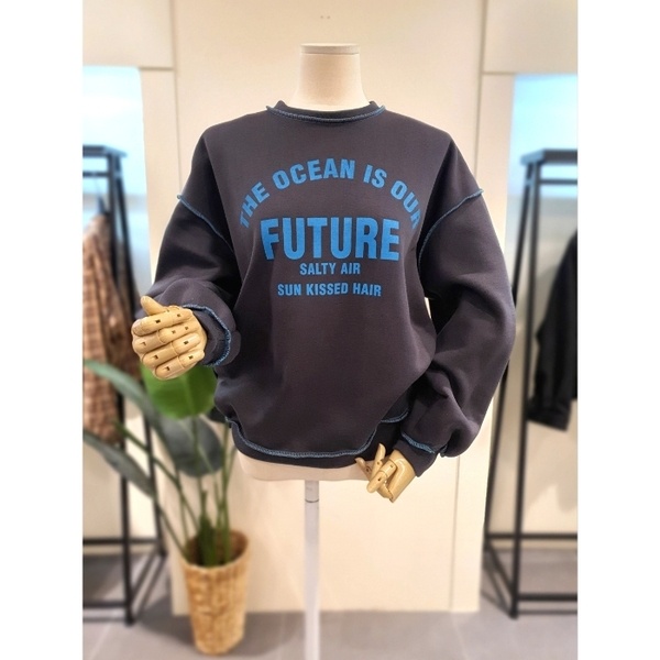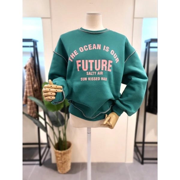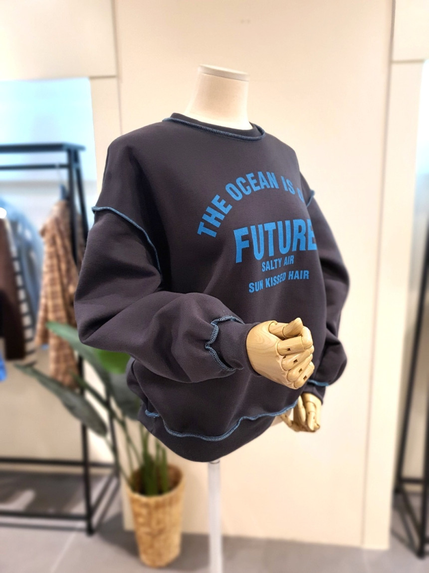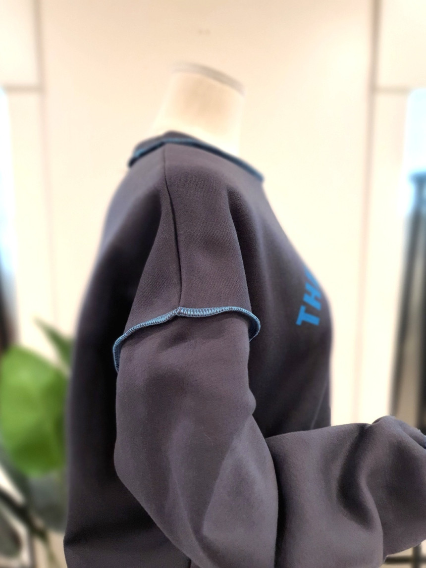 안감기모 맨투맨입니다.넥 밑단 소매 배색 스티치로 포인트를 주었습니다.
