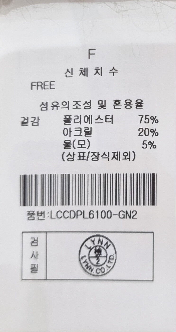 (상표/장식제외):100%