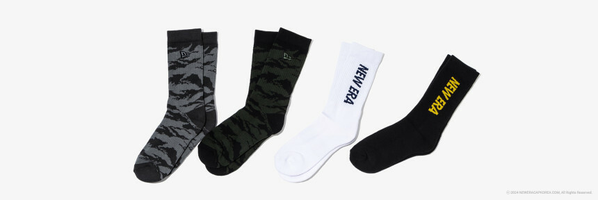 뉴에라 크루 삭스 2팩 컬렉션을 소개합니다. 크루 삭스 실루엣의 2 PACK 삭스입니다. 대비되는 컬러를 사용한 뉴에라 스크립트 로고로 포인트를 준 스타일과 카모플라쥬 무늬를 사용한 스타일로 출시 되었습니다. 밴딩으로 발목을 안정감 있게 잡아주어 편안한 착용감을 자랑하는 뉴에라 크루 삭스 2팩 컬렉션과 함께 데일리룩을 완성해보세요.