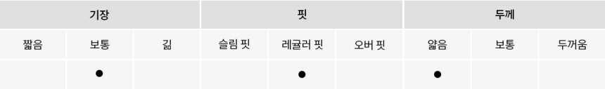 · 핏감 : □ 루즈 ■ 표준 □ 슬림