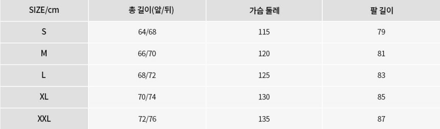 사이즈 : S(90),M(95),L(100),XL(105),XXL(110)