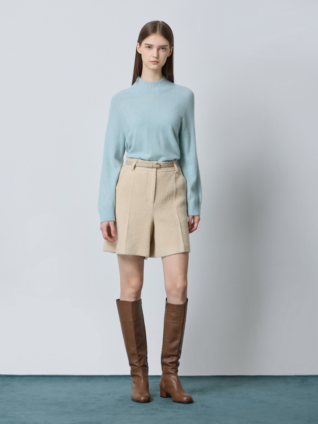 - 울 블렌드 부클 소재로 따뜻해보이는 외관을 가진 쇼츠입니다.