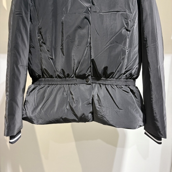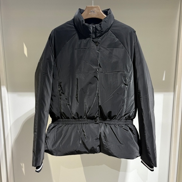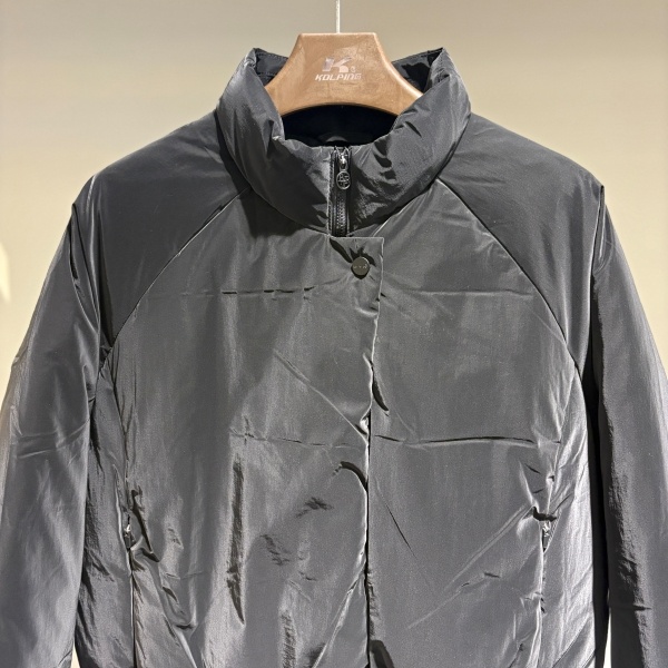 여성 글로시 덕다운 자켓. 덕다운 충전재를 사용하여 보온성이 우수하다.