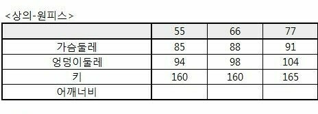소고(SOGO) 트리아나 의류 사이즈 기준표