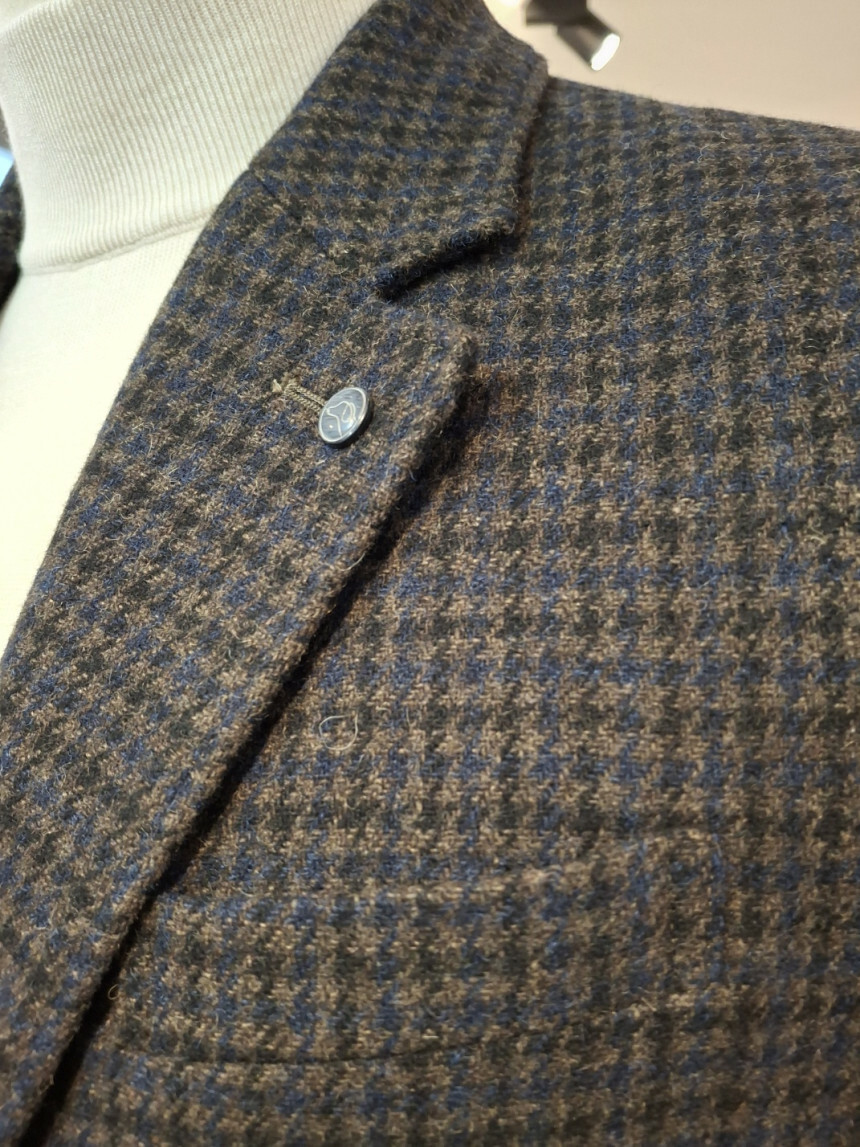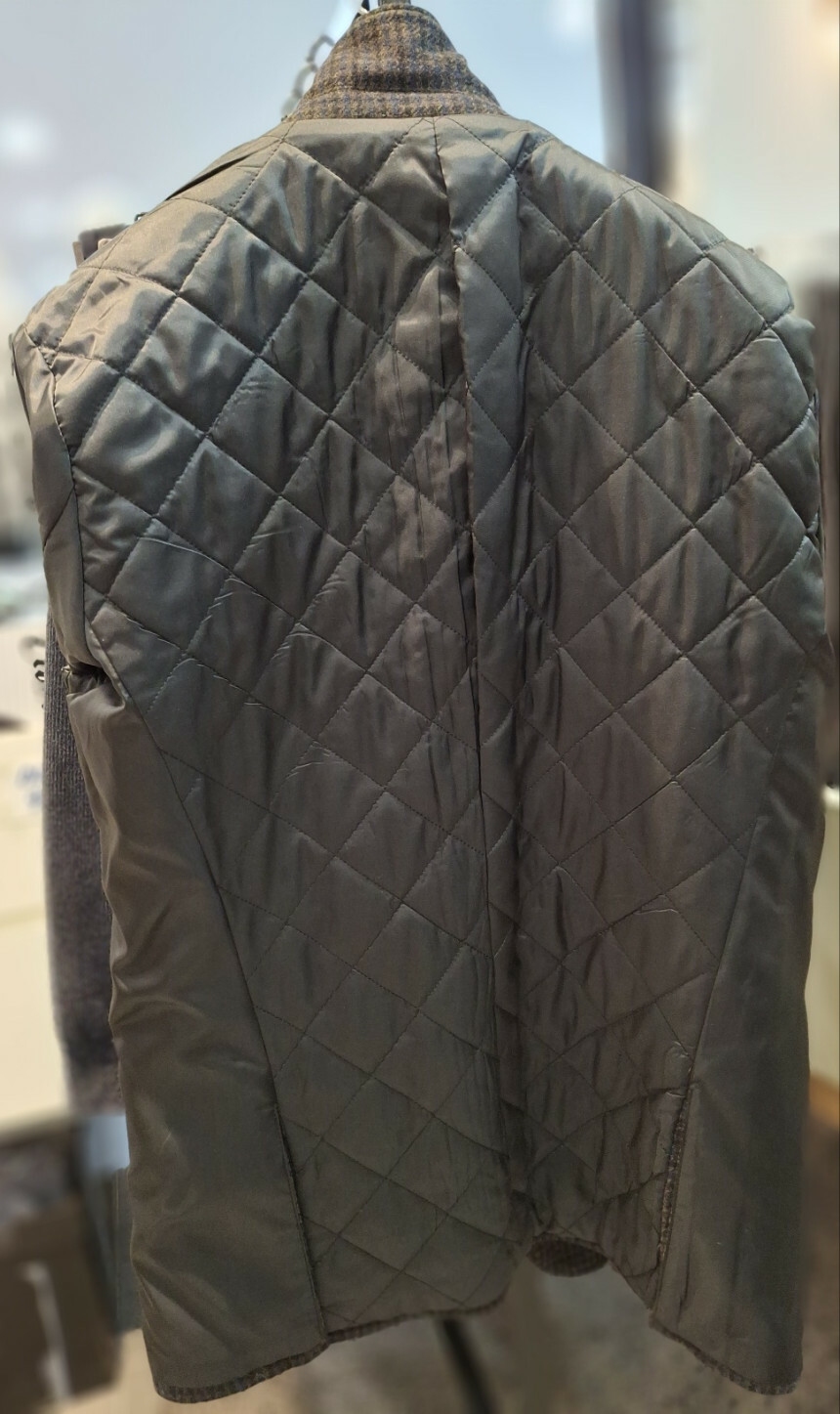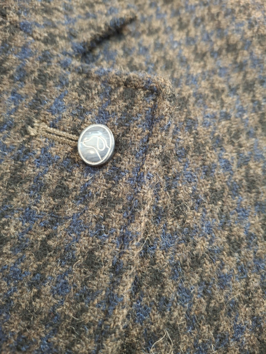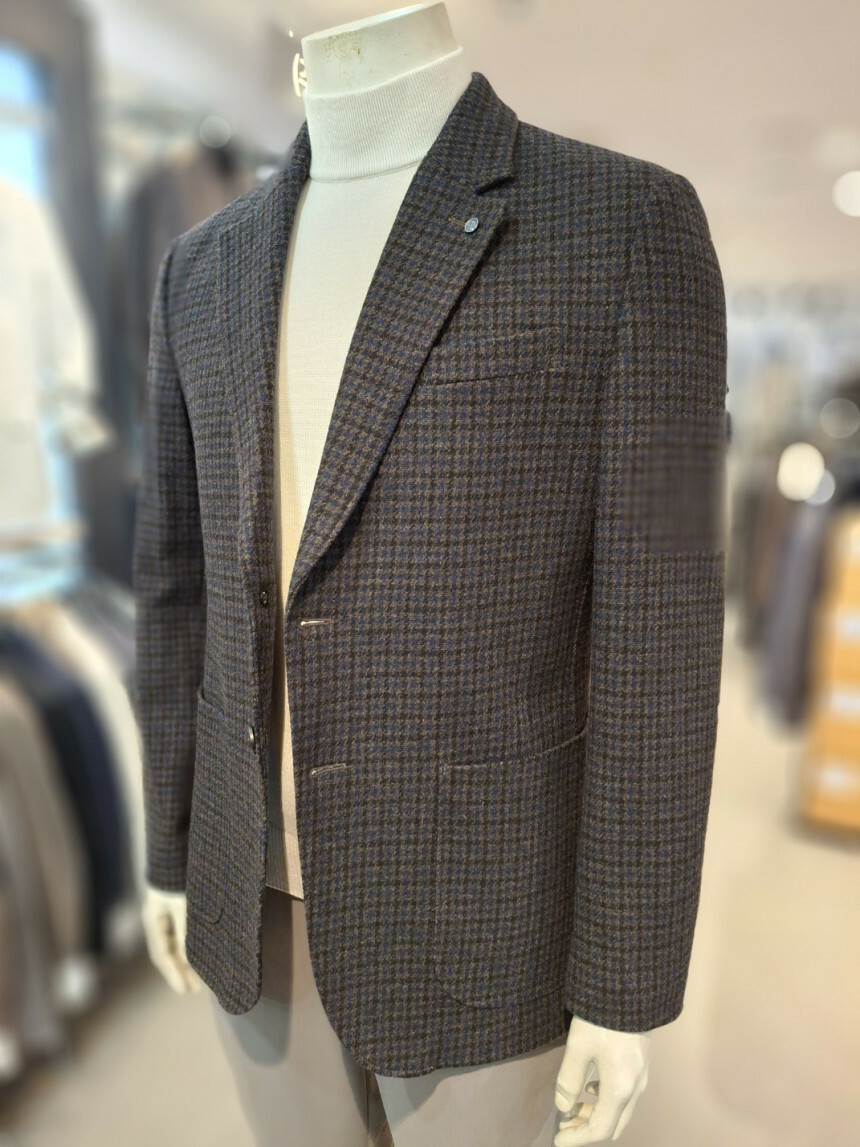 울70% , 브라운베이스에 네이비컬러 체크가 고급스러운 등판누빔 모직자켓
