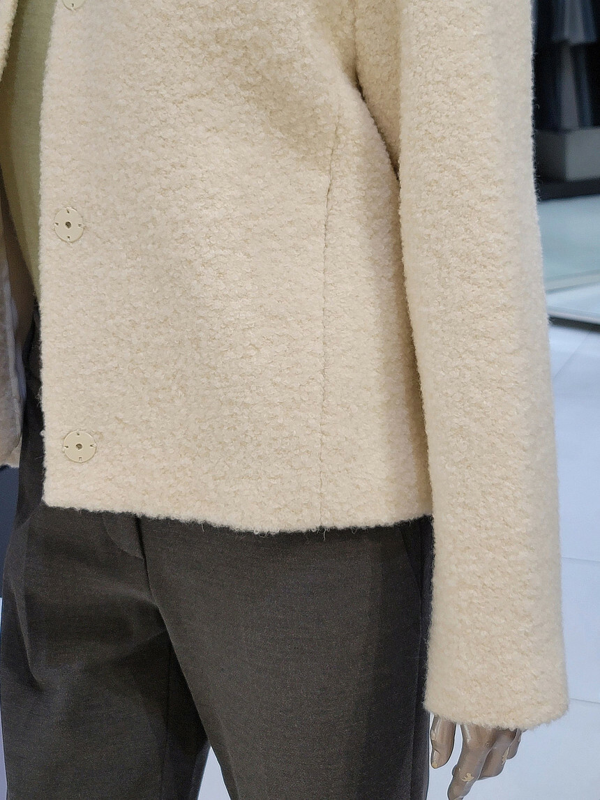 여밈 라인 히든 스냅 버튼 클로징으로 깔끔한 실루엣에