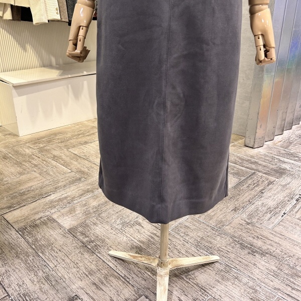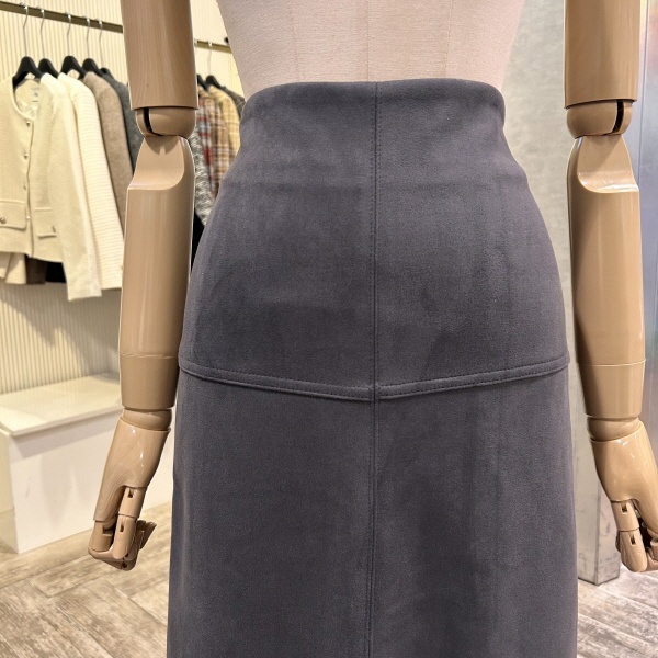 2025년 f/w 신상?백밴딩 H라인 스웨이드 미디 스커트 입니다.