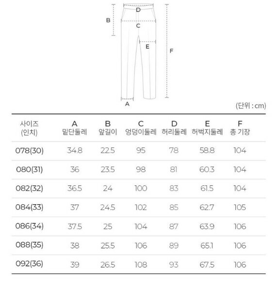 사이즈 : 78(30),80(31),82(32),84(33),86(34),88(35),92(36)