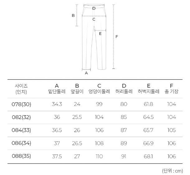 사이즈 : 78(30),82(32),84(33),86(34),88(35)