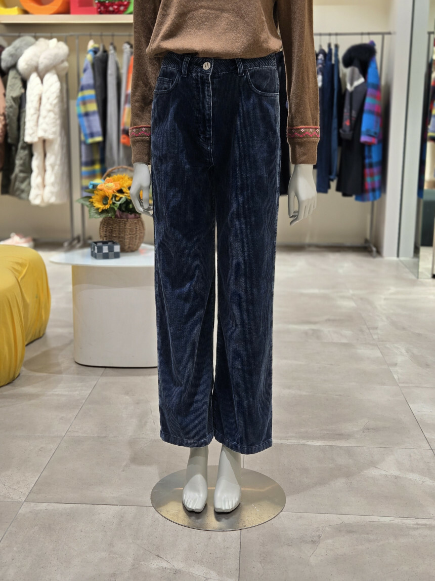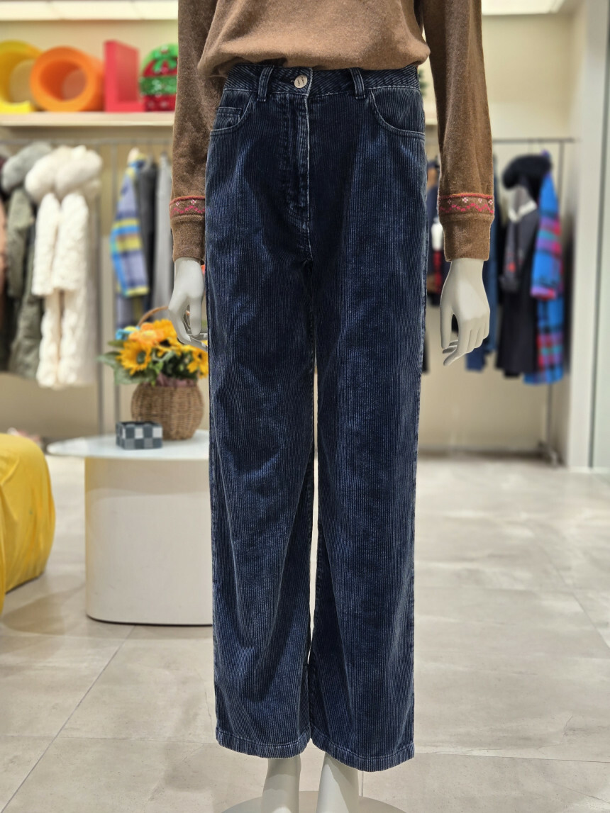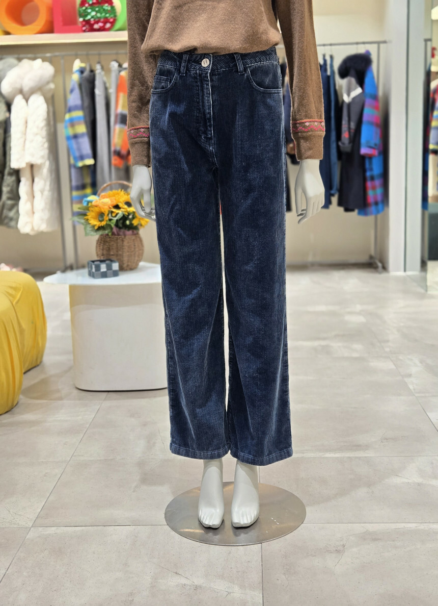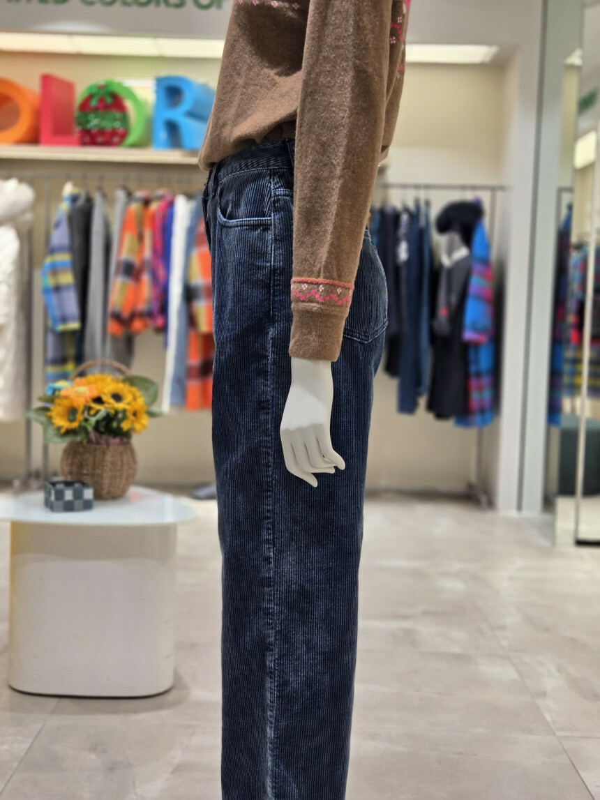 베네통 데님 코듀로이 롱일자 팬츠