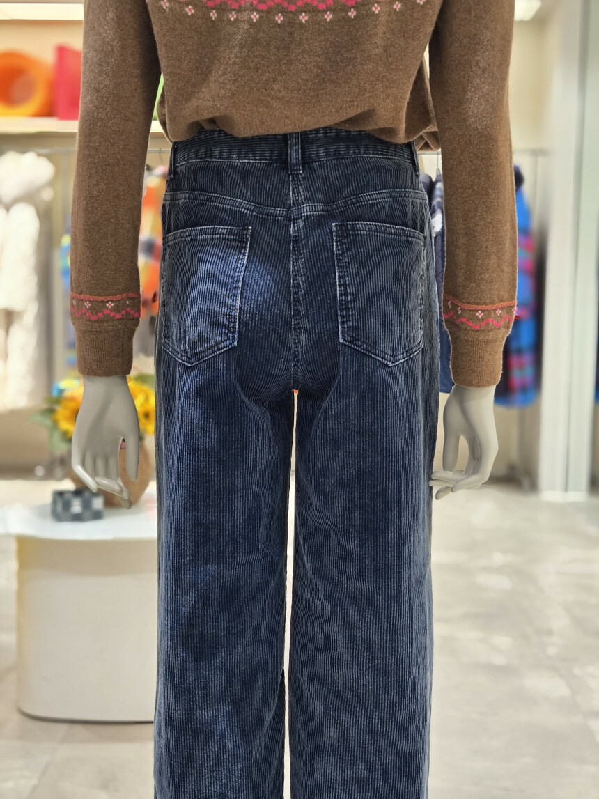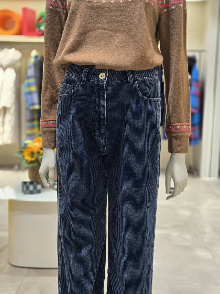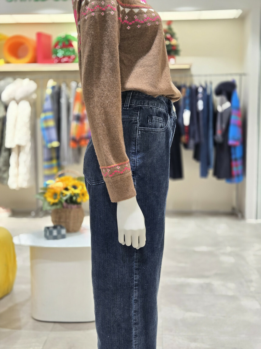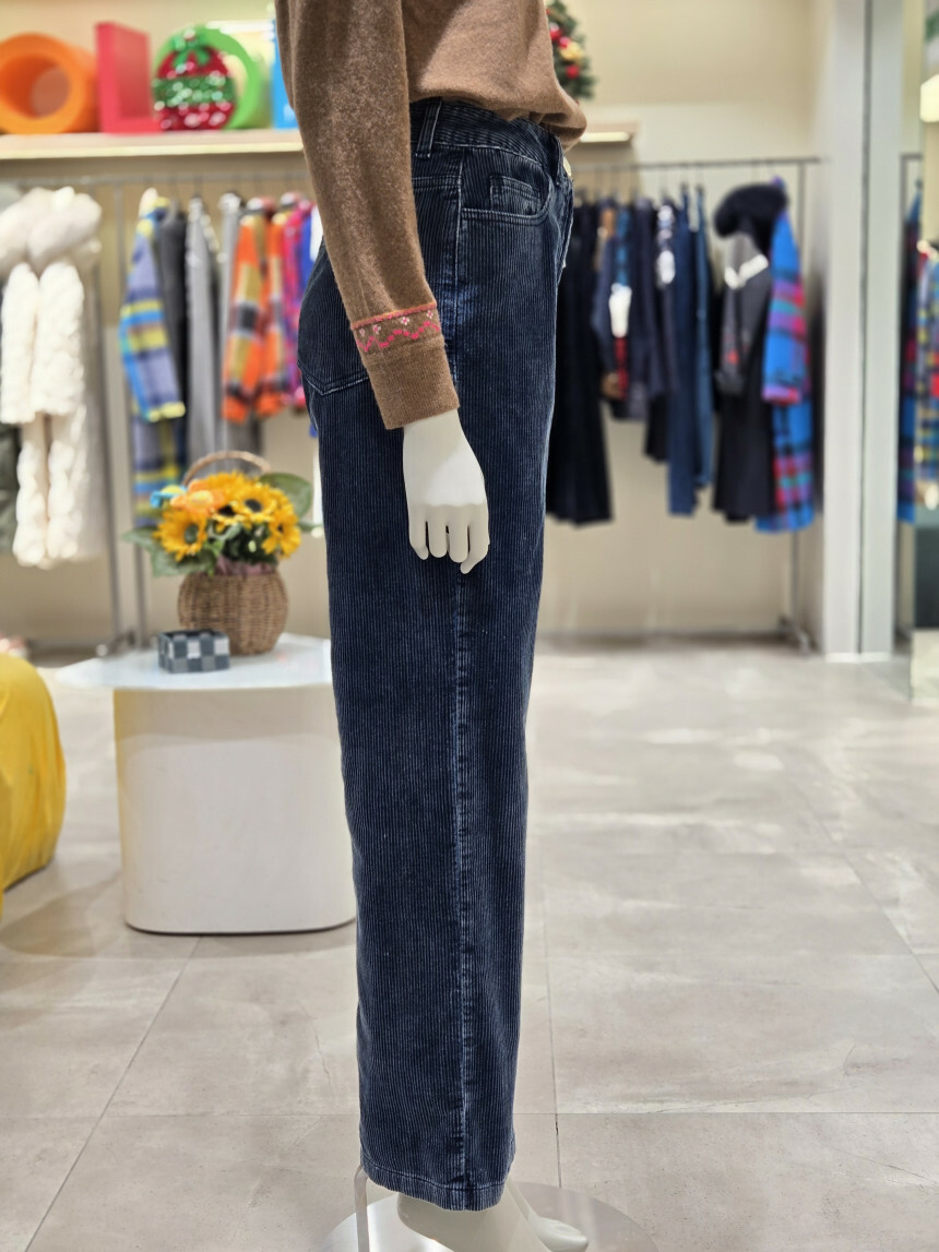 베네통 데님 코듀로이 롱일자 팬츠
