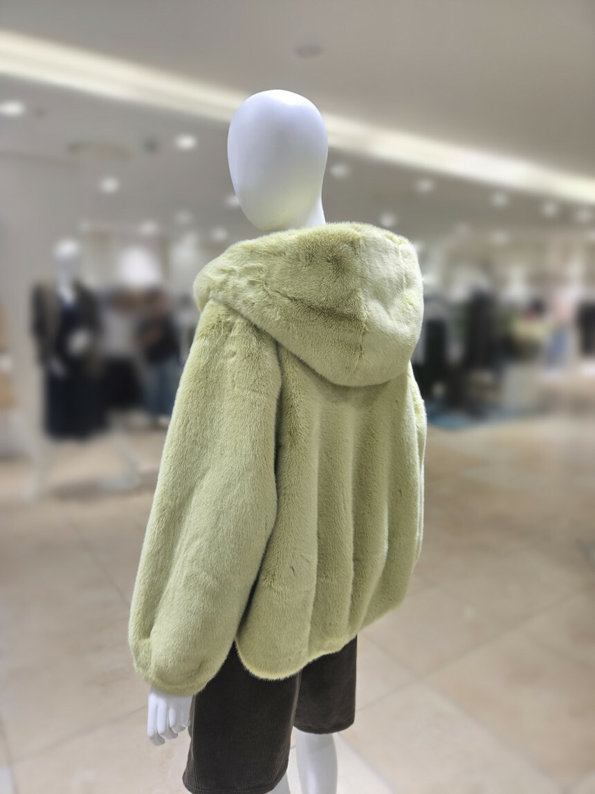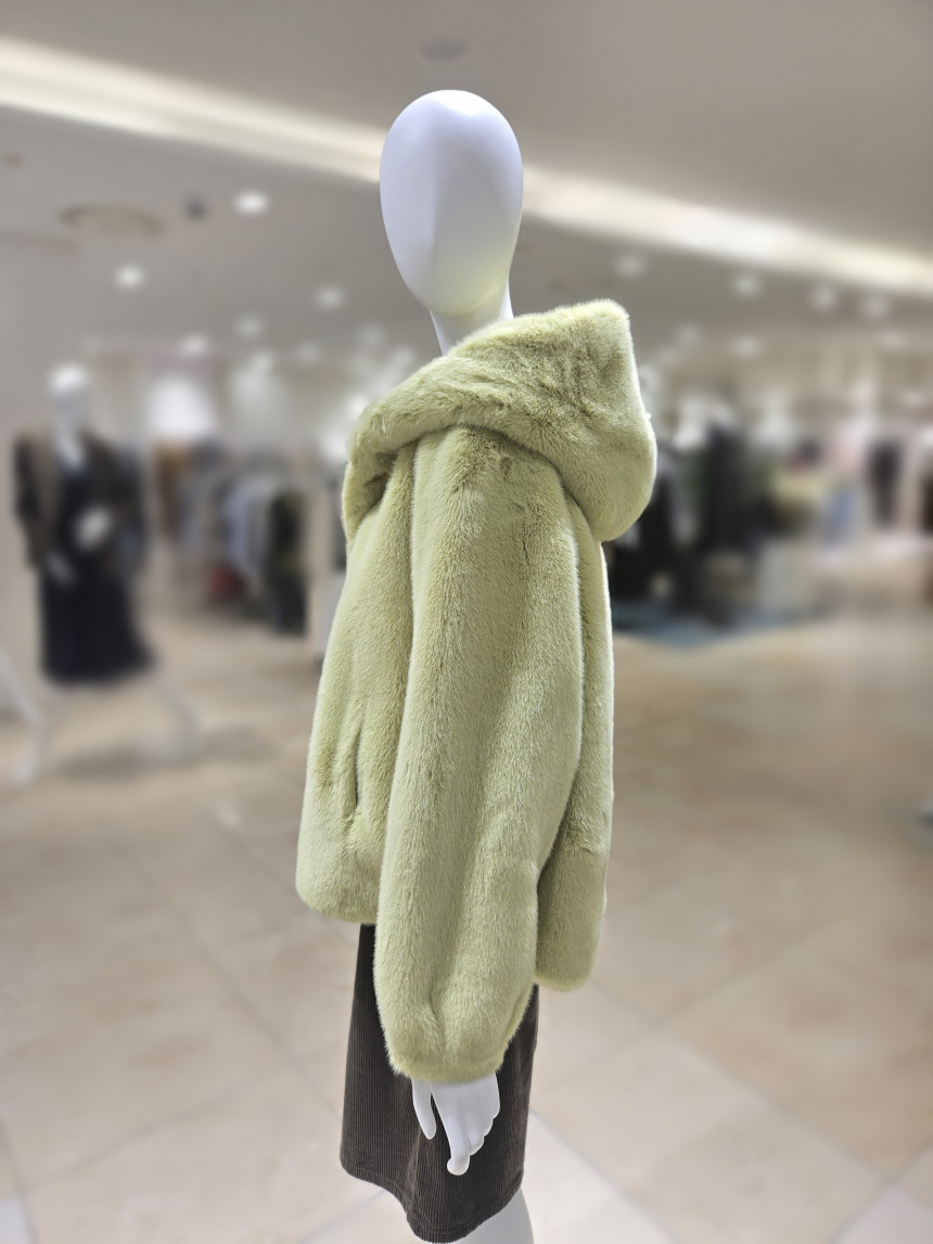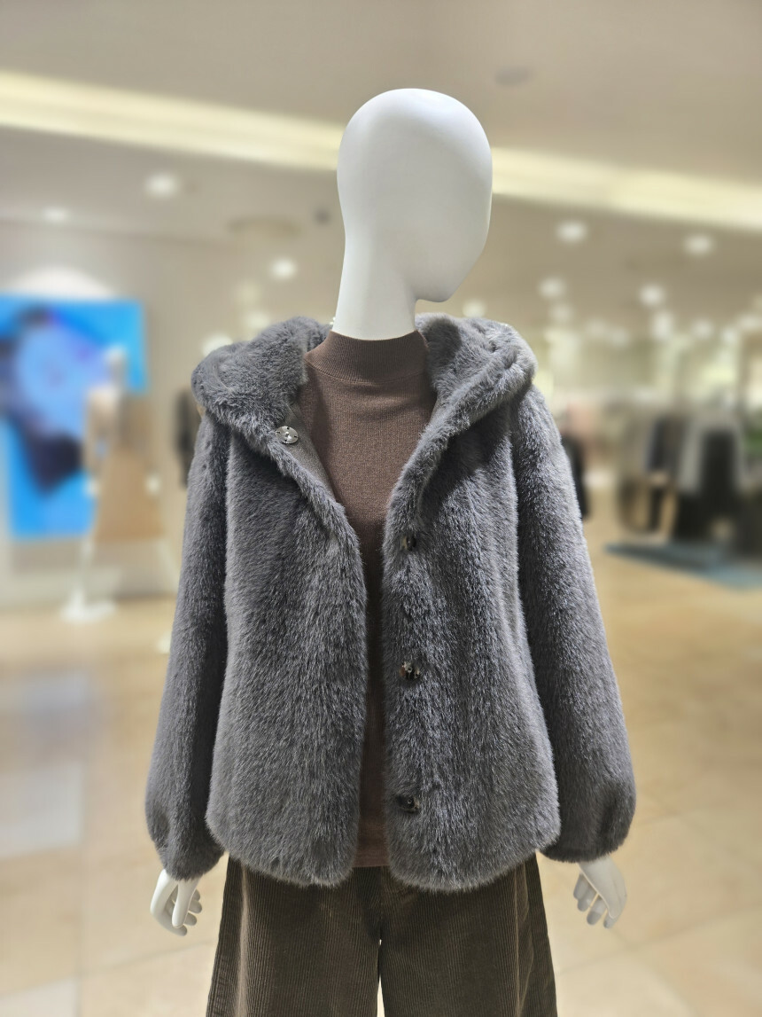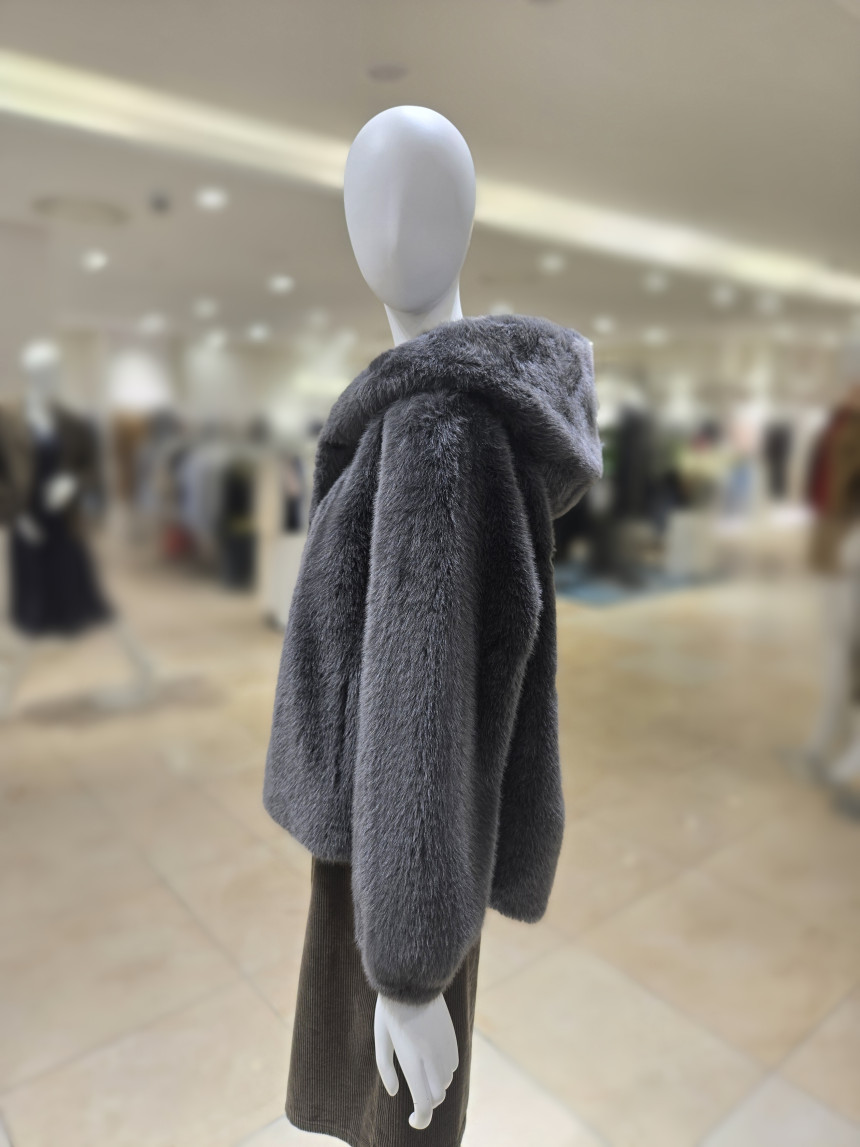 페이크 퍼 언발기장 후드 코트 YW5X-M985