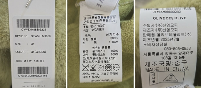 · 안감 : □ 전체 □ 부분 ■ 없음