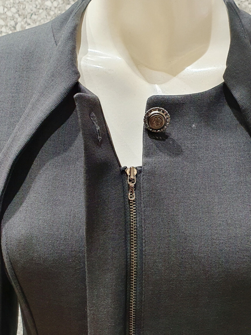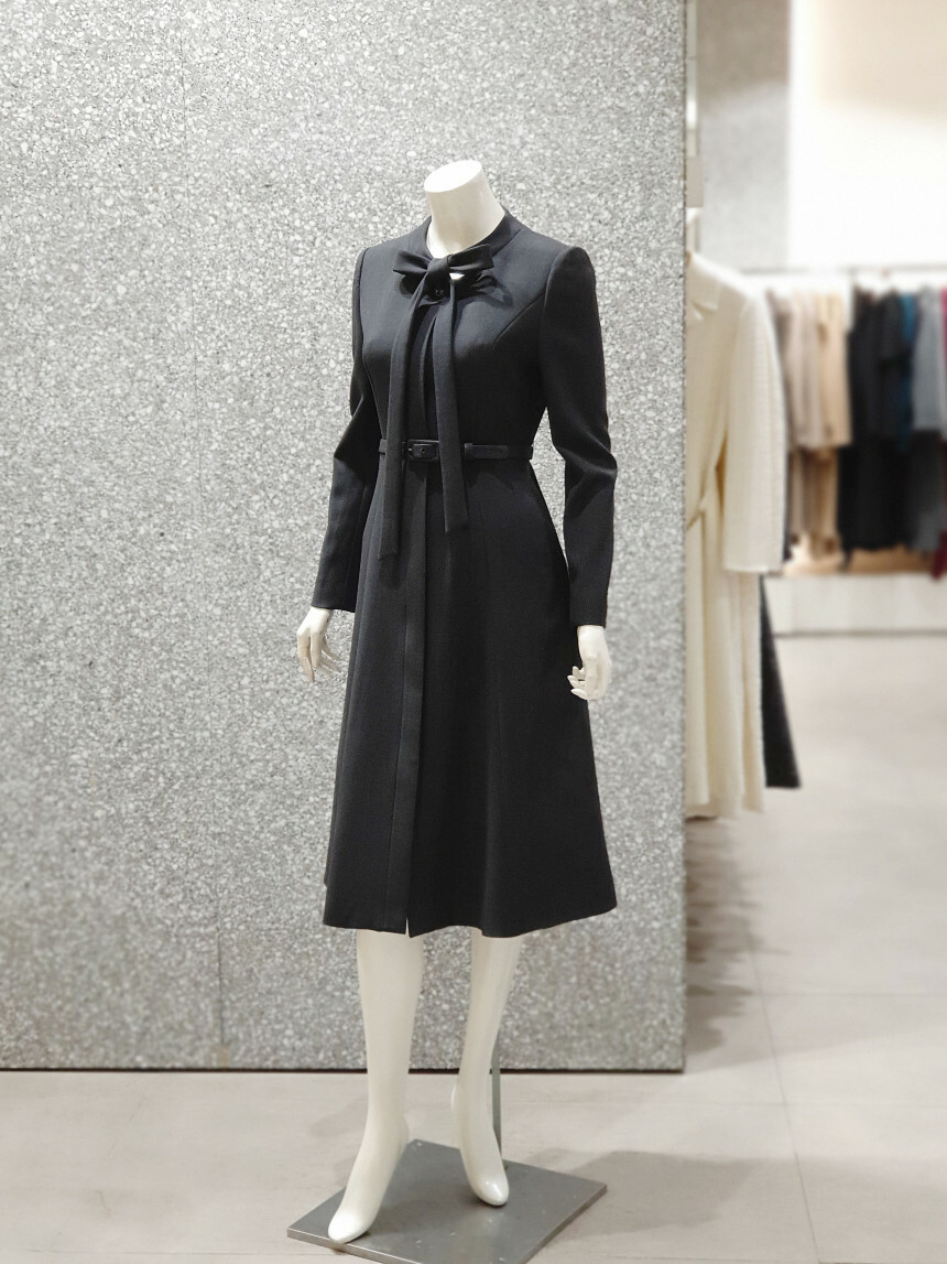 헴 라인이 어우러진 포인트 버튼 지퍼 클로징 원피스입니다.