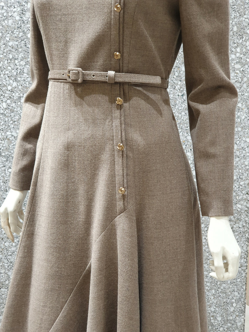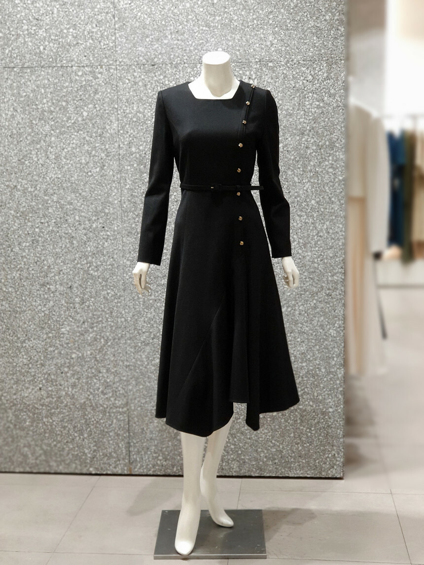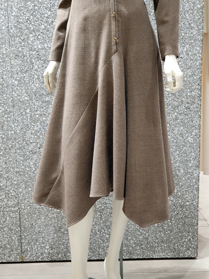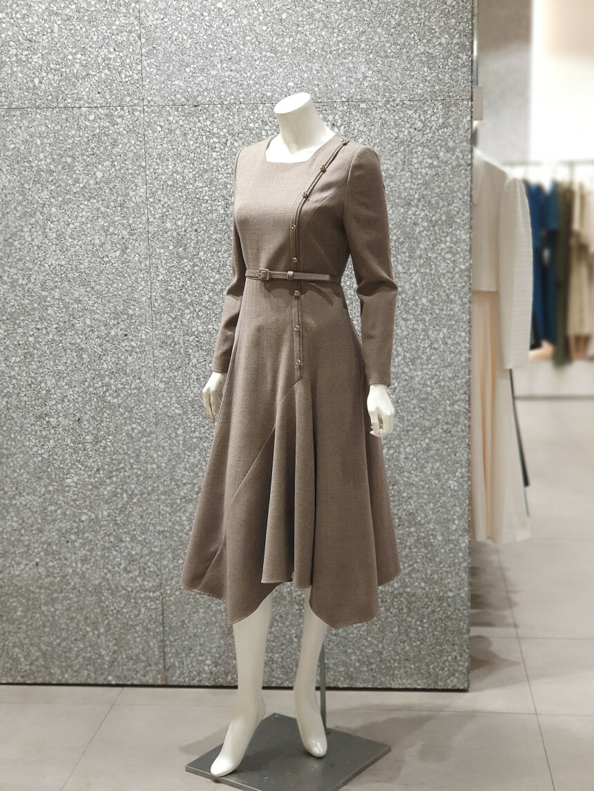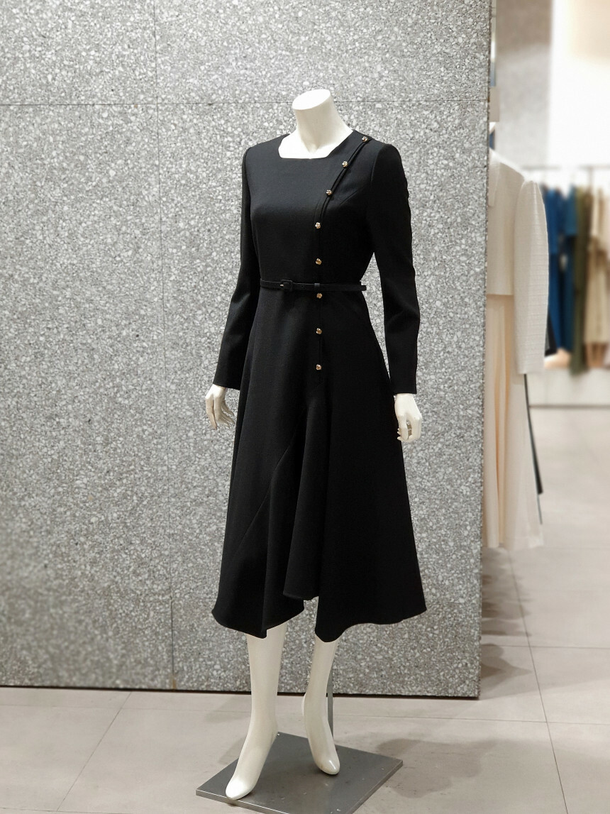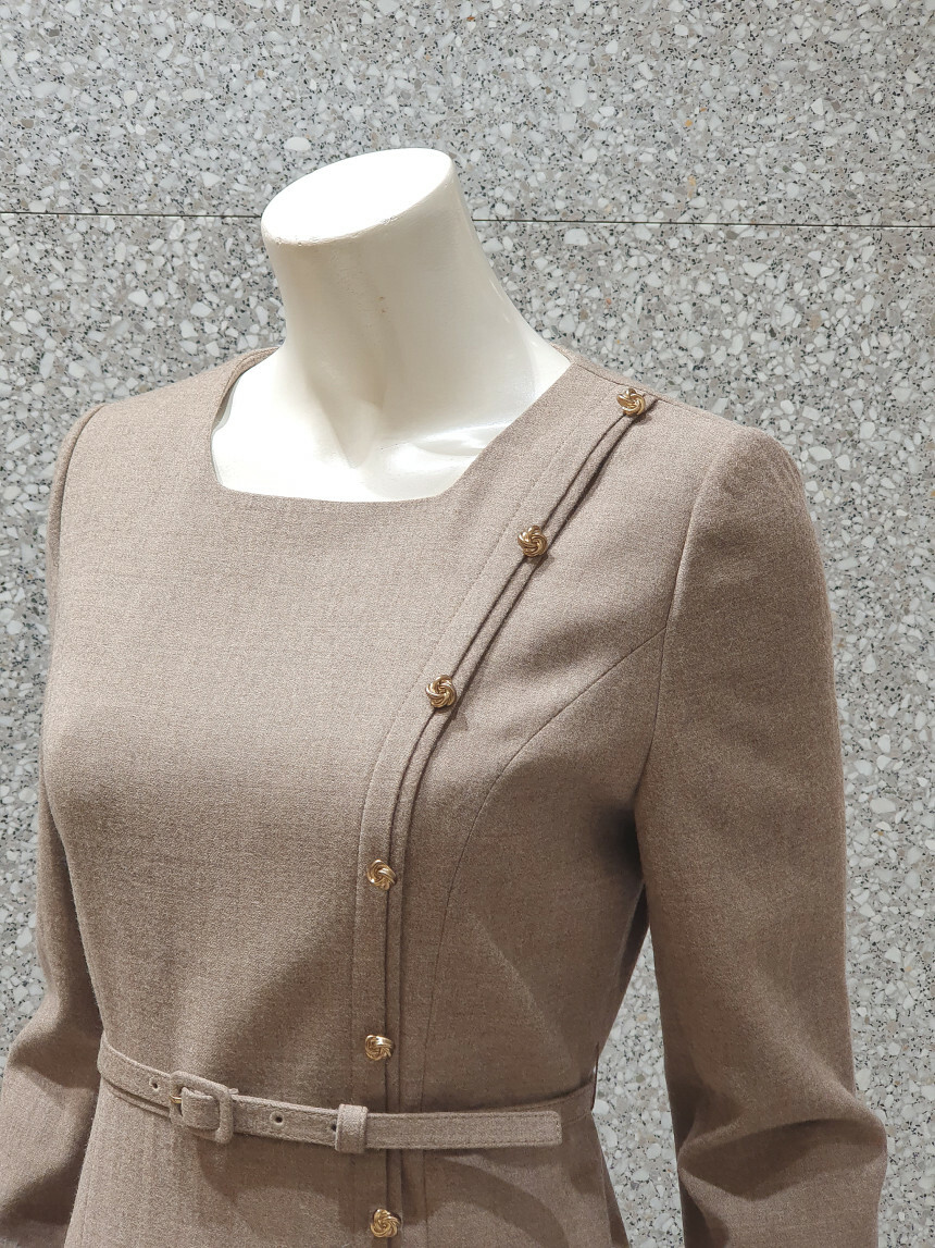 프런트 사선 핀턱 라인을 더한 버튼 장식으로 포인트를 준