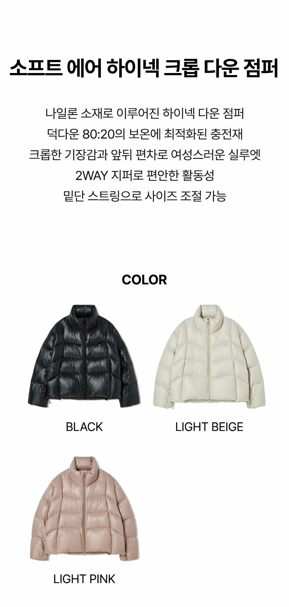 여성) 소프트 에어 하이넥 크롭 다운 점퍼