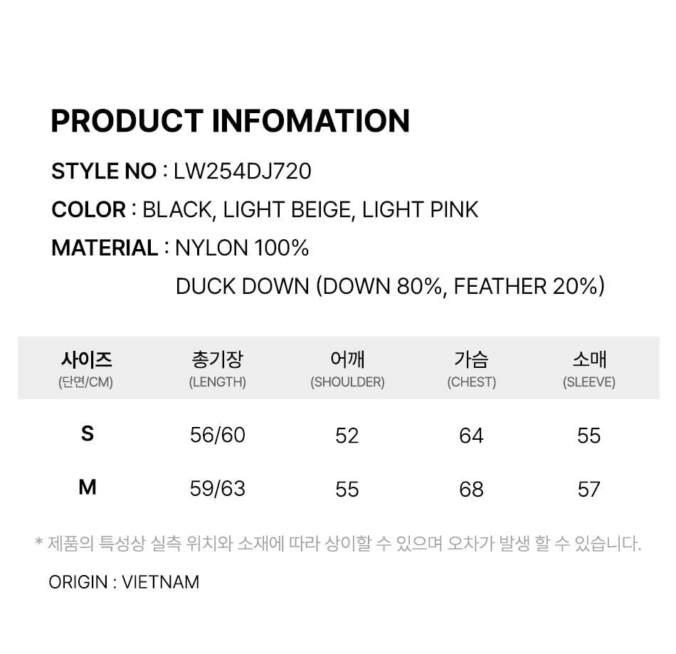 제품 설명나일론 소재로 이루어진 하이넥 다운 점퍼