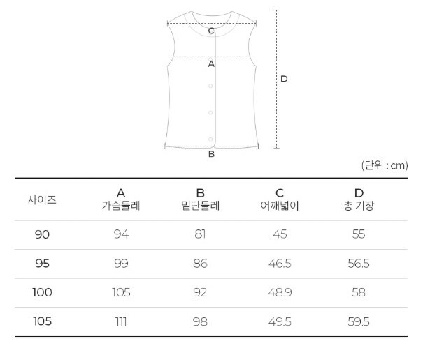 사이즈 단위는 cm이며,재는 위치에 따라 1~3cm사이즈 오차가